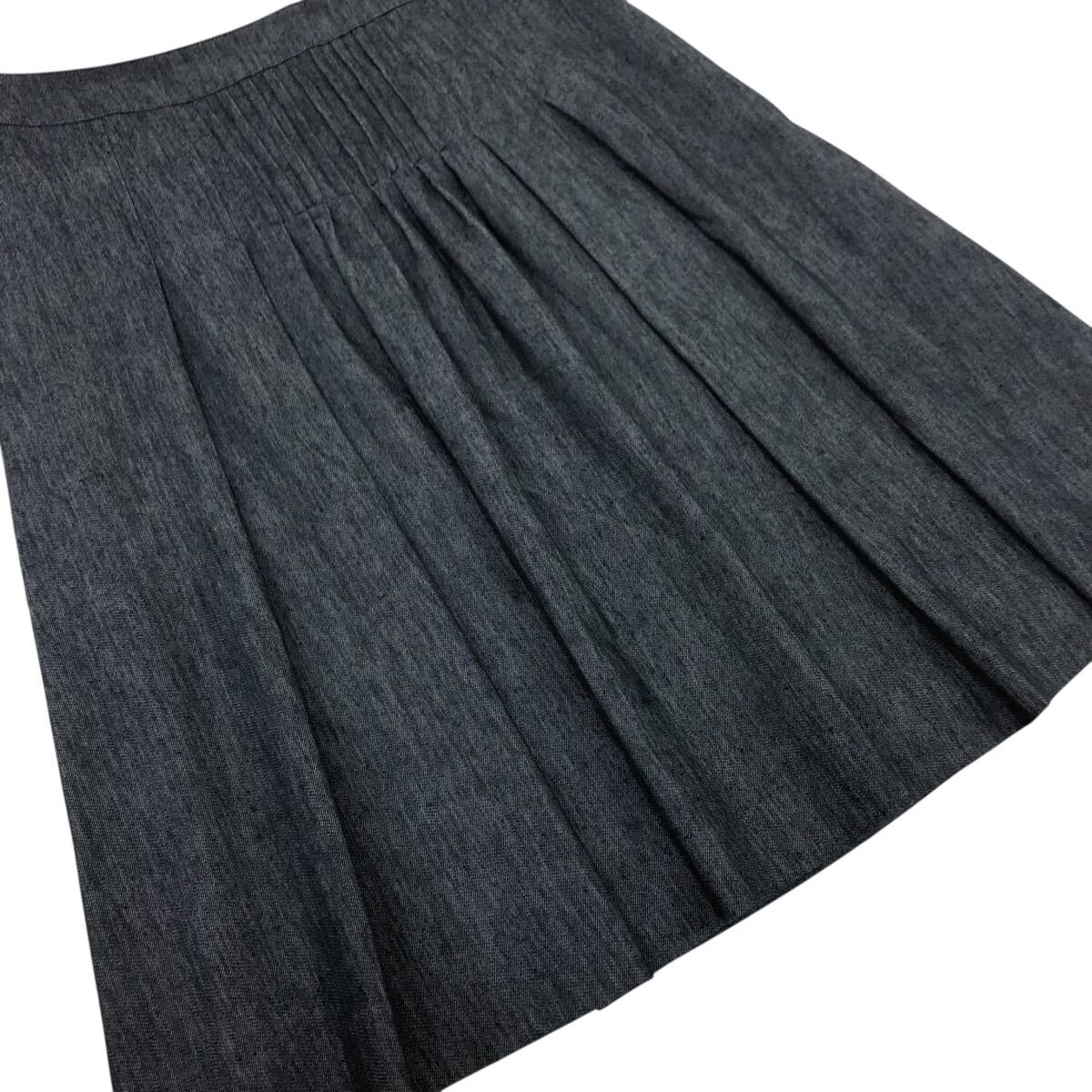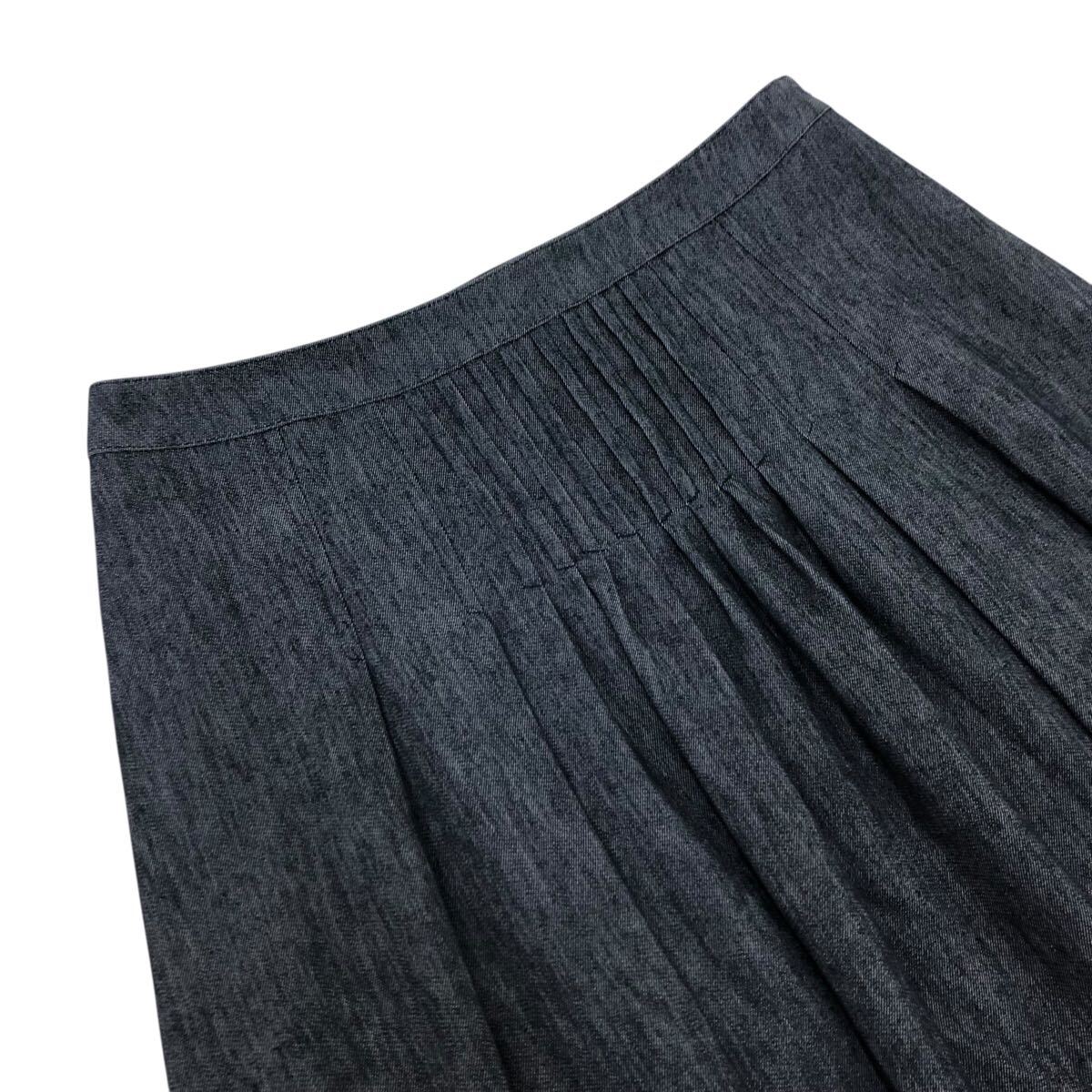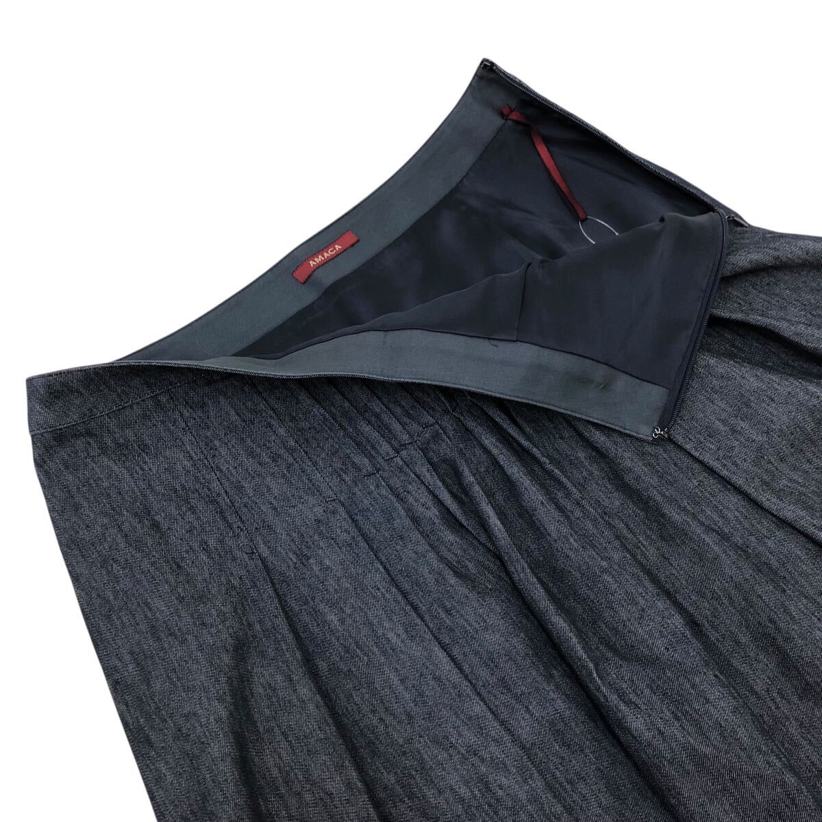 Nm308-85 AMACA アマカ リネン コットン デニム タック ピンタック ひざ丈スカート スカート ボトムス インディゴ レディース 38