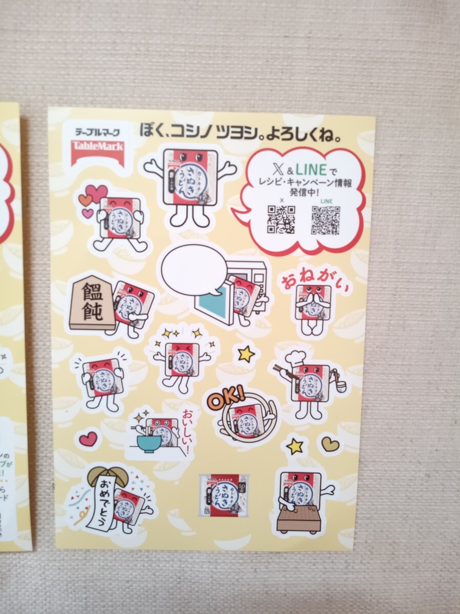 テーブルマークのコシノツヨシのステッカー2枚セットです。