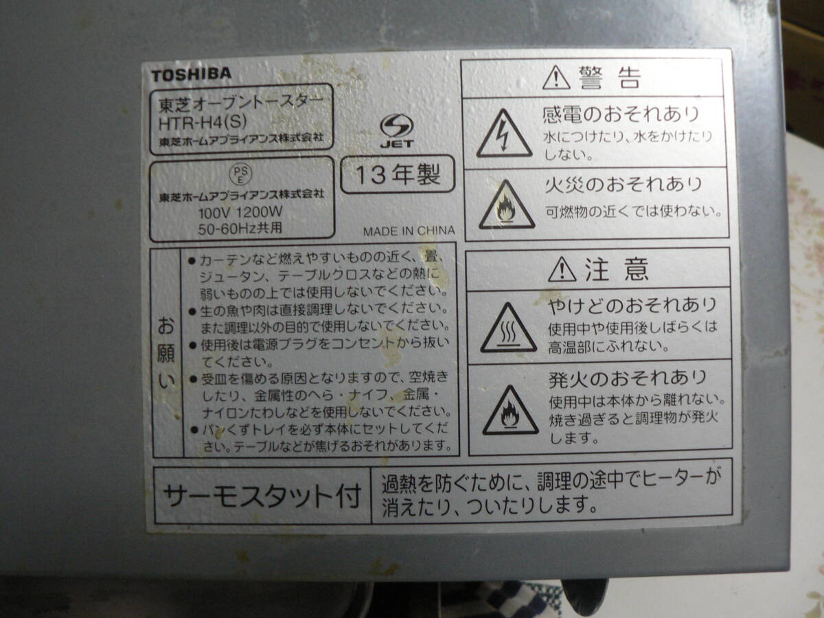 送料最安 1050円~ 家電10-04:東芝 オーブントースター TOSHIBA HTR-H4(S) 1200W(400Wx3) サーモスタット付き 2013年