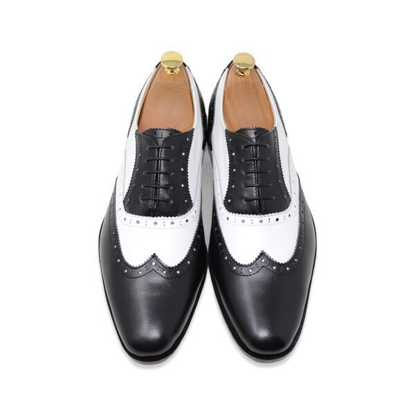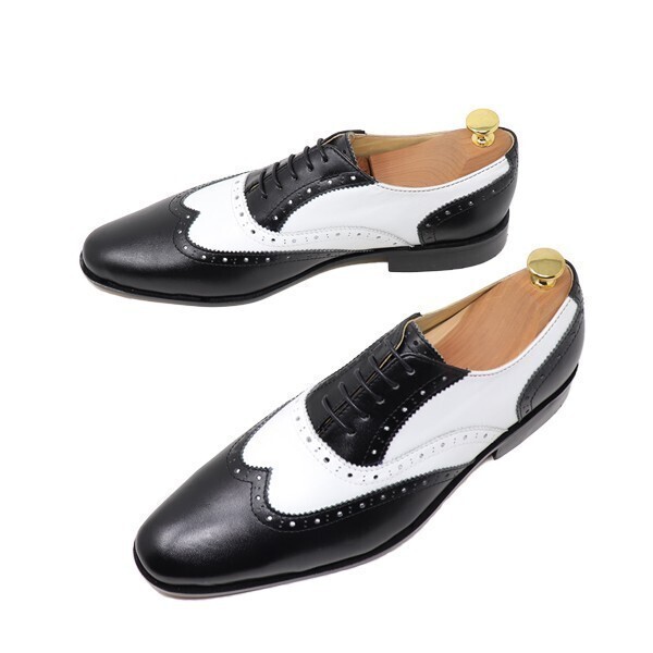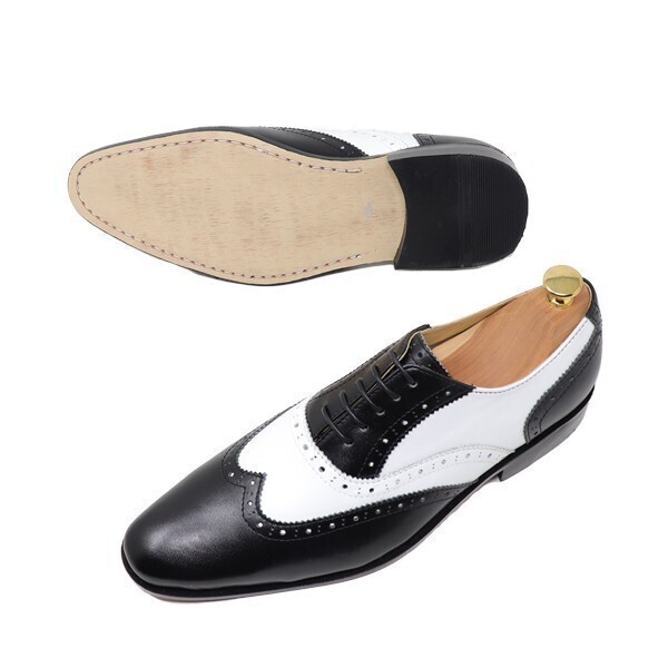 24.5cm メンズ 本革 ウィングチップ ホワイト ブラック 白 黒 コンビ コレスポンデント ハンドメイド マッケイ 衣装靴 パーティー靴 1062