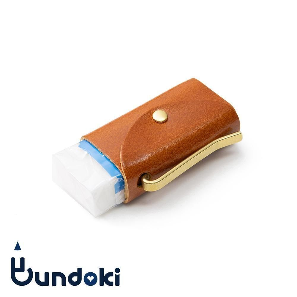 スリムサイズの消しゴム用のカバーです。牛革のカバーに真鍮のクリップと飾り鋲をあしらいました。