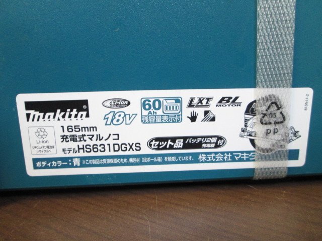 新品 makita マキタ 165mm 充電式マルノコ HS631DGXS 青 18V 6.0Ah バッテリー2個 充電器 セット 鮫肌 丸のこ 丸ノコ 丸鋸 切断 6