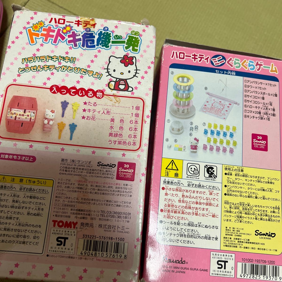 危機一髪は付属品全てありますが、グラグラゲームの方はコマ2.3個とバランスボールが1個、巾着破れてますがまだまだ遊べると思います。