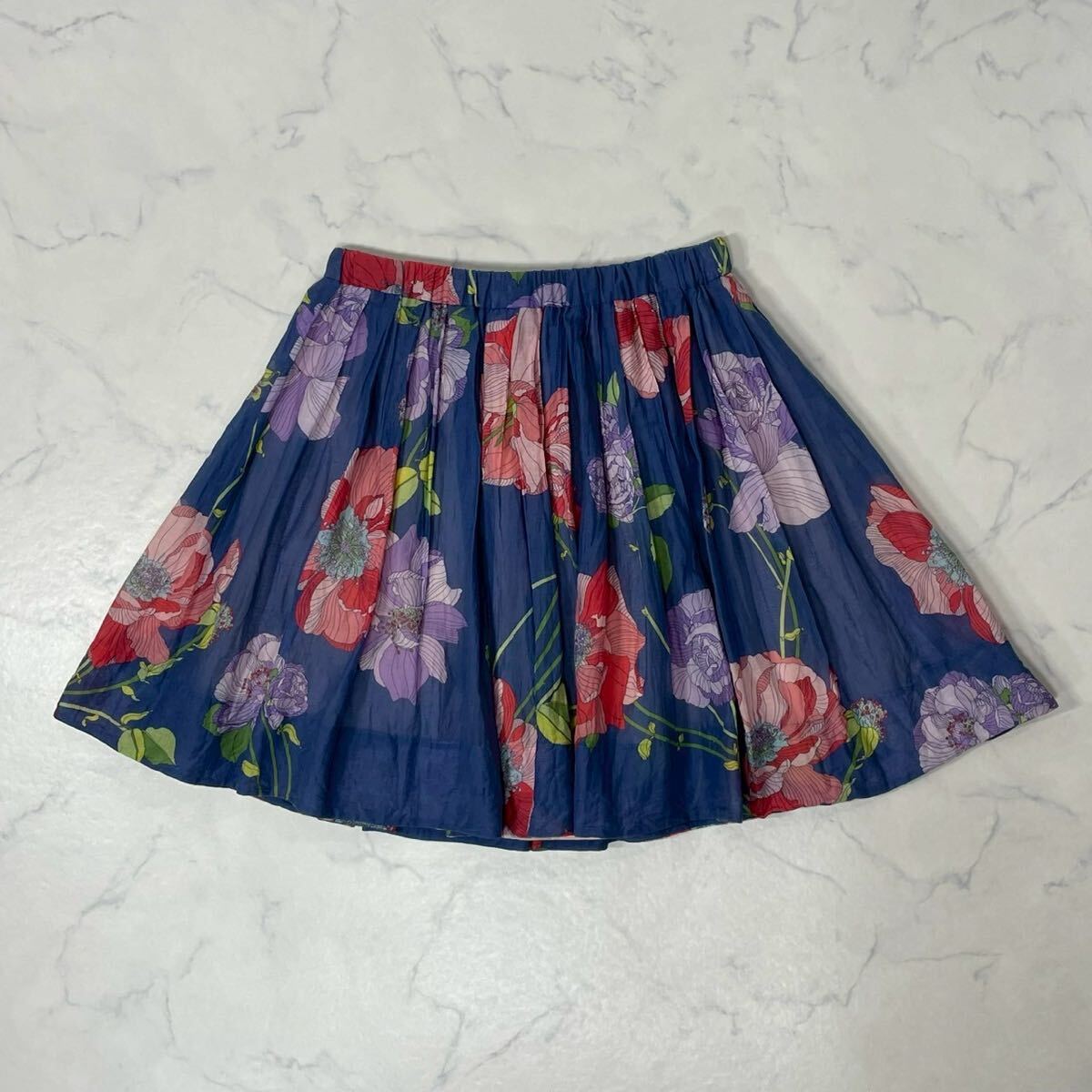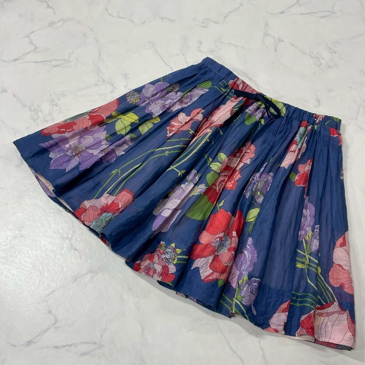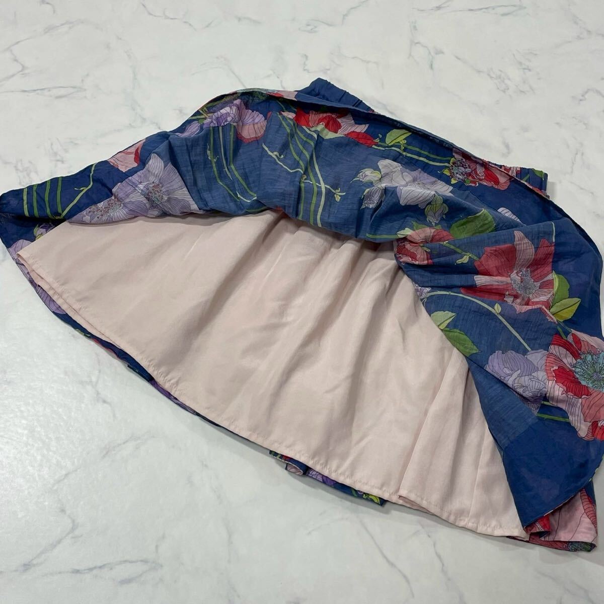 花柄 裏地付き ウエストゴム 腰紐 タック 透け感 フレア ミニ スカート