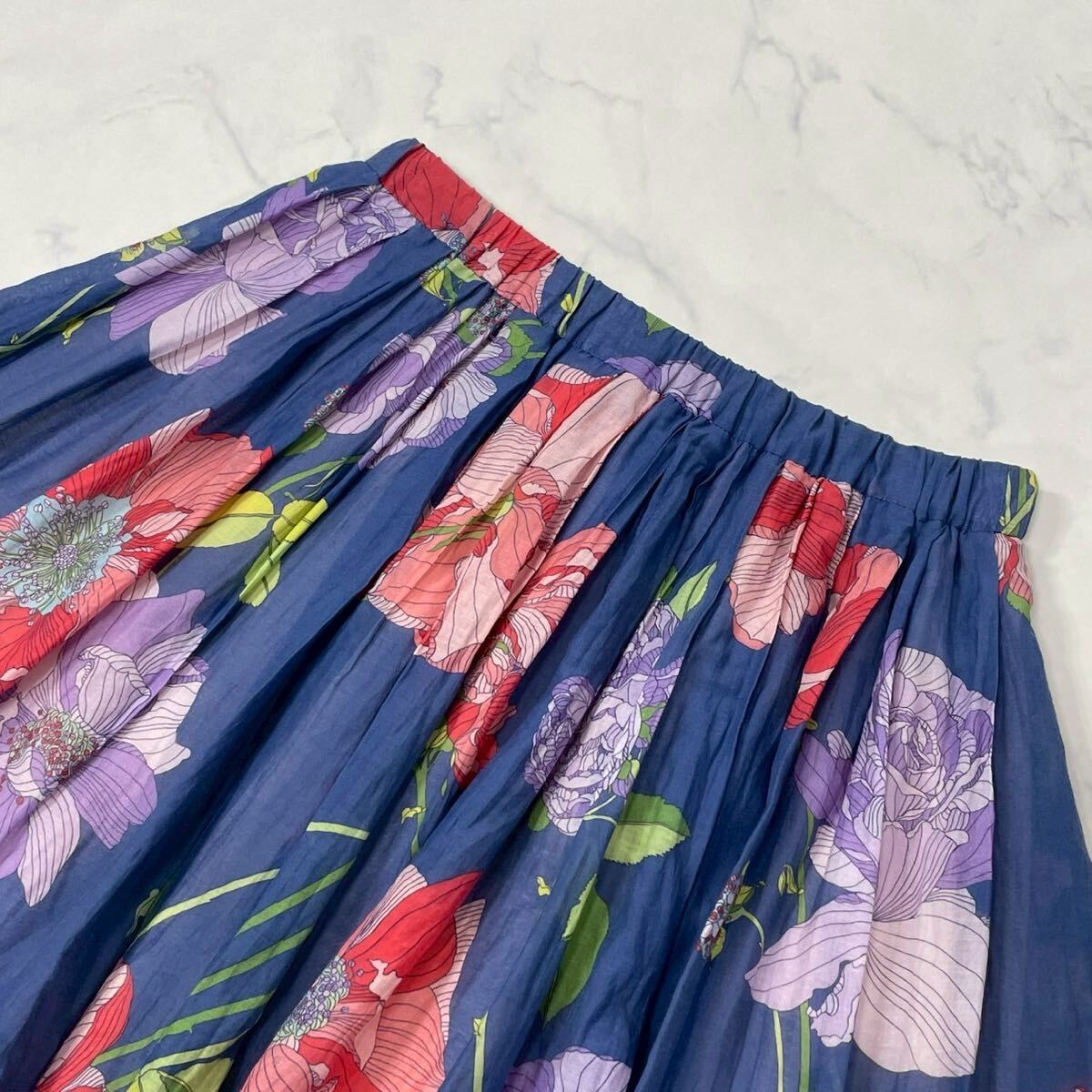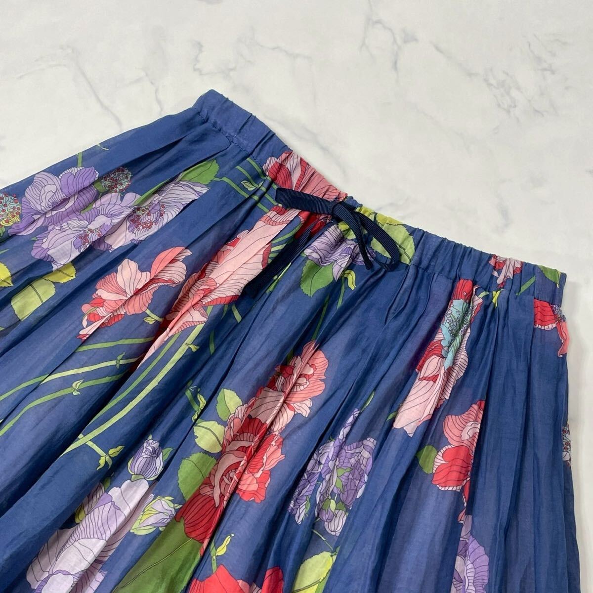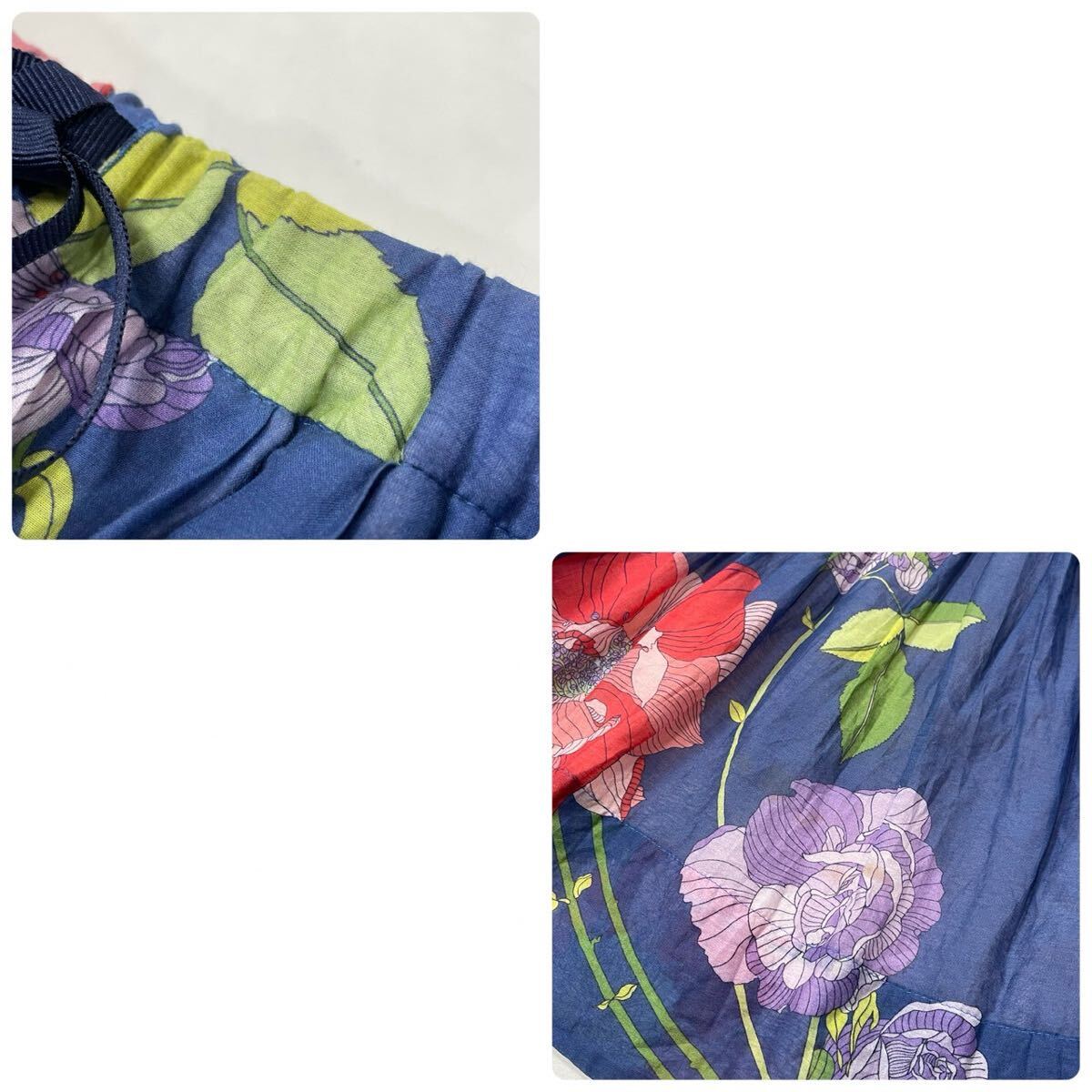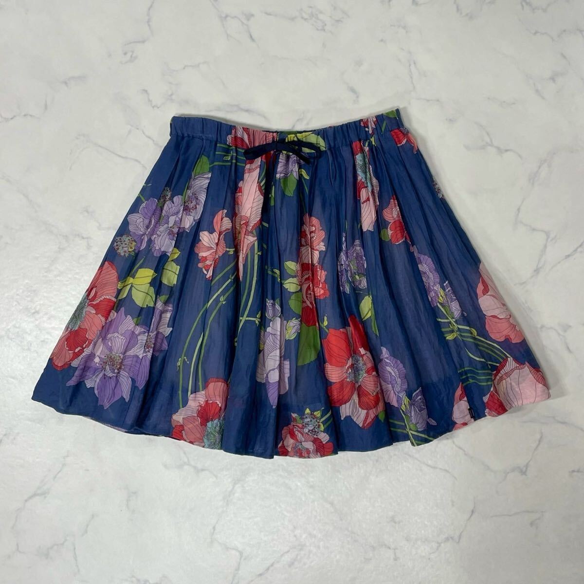 花柄 裏地付き ウエストゴム 腰紐 タック 透け感 フレア ミニ スカート