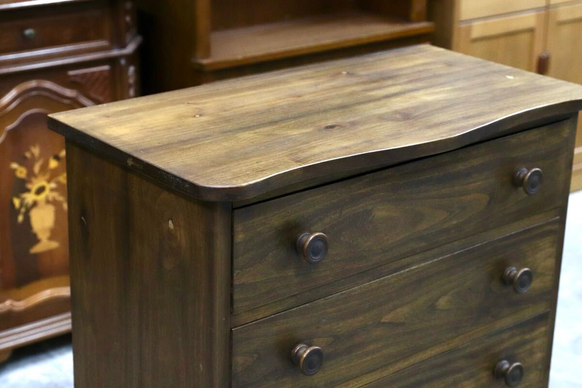 神戸家具と揃えて設置されていたレトロな佇まいのチェストです。木の温もりを感じる、丁度良いサイズ感も魅力です。