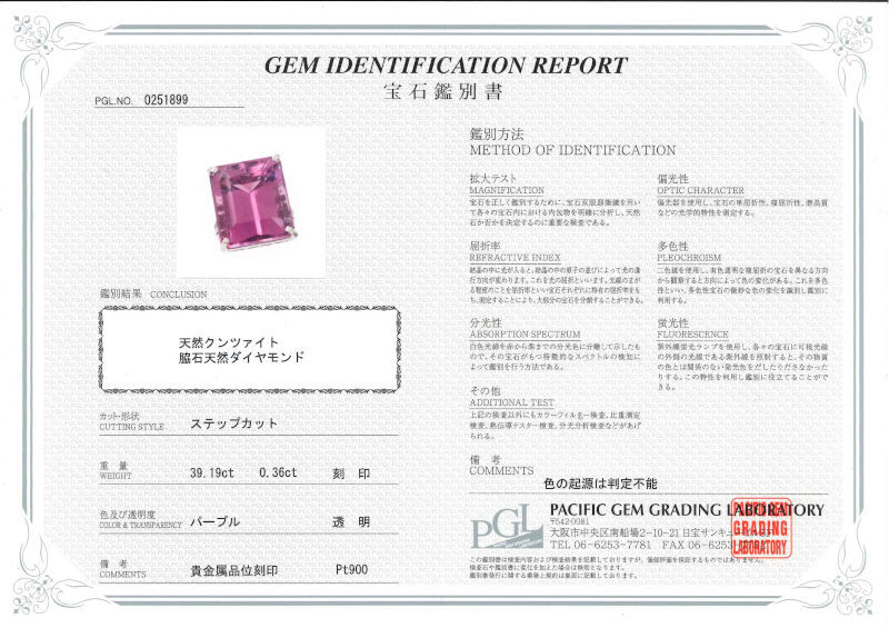 付属品 | 宝石鑑別書(PGL) ※販売価格が121,000円以上の商品については宝石鑑別書を付けて納品致します。但し、作品の材質や構造の理由で一部商品にはお付けできませんので、予めご了承ください |