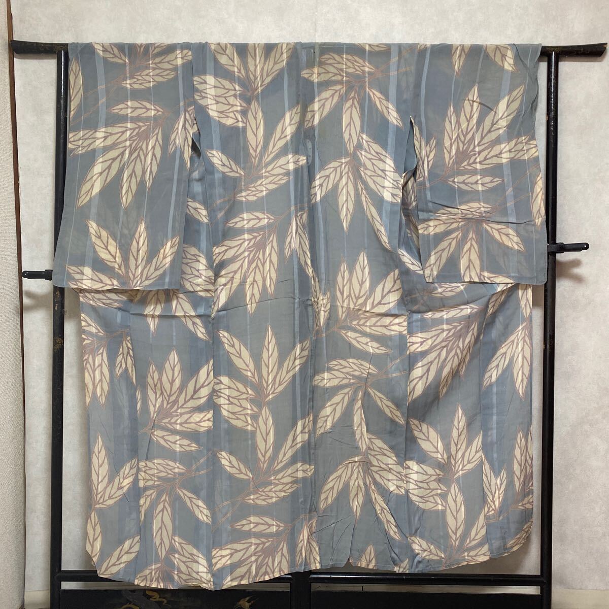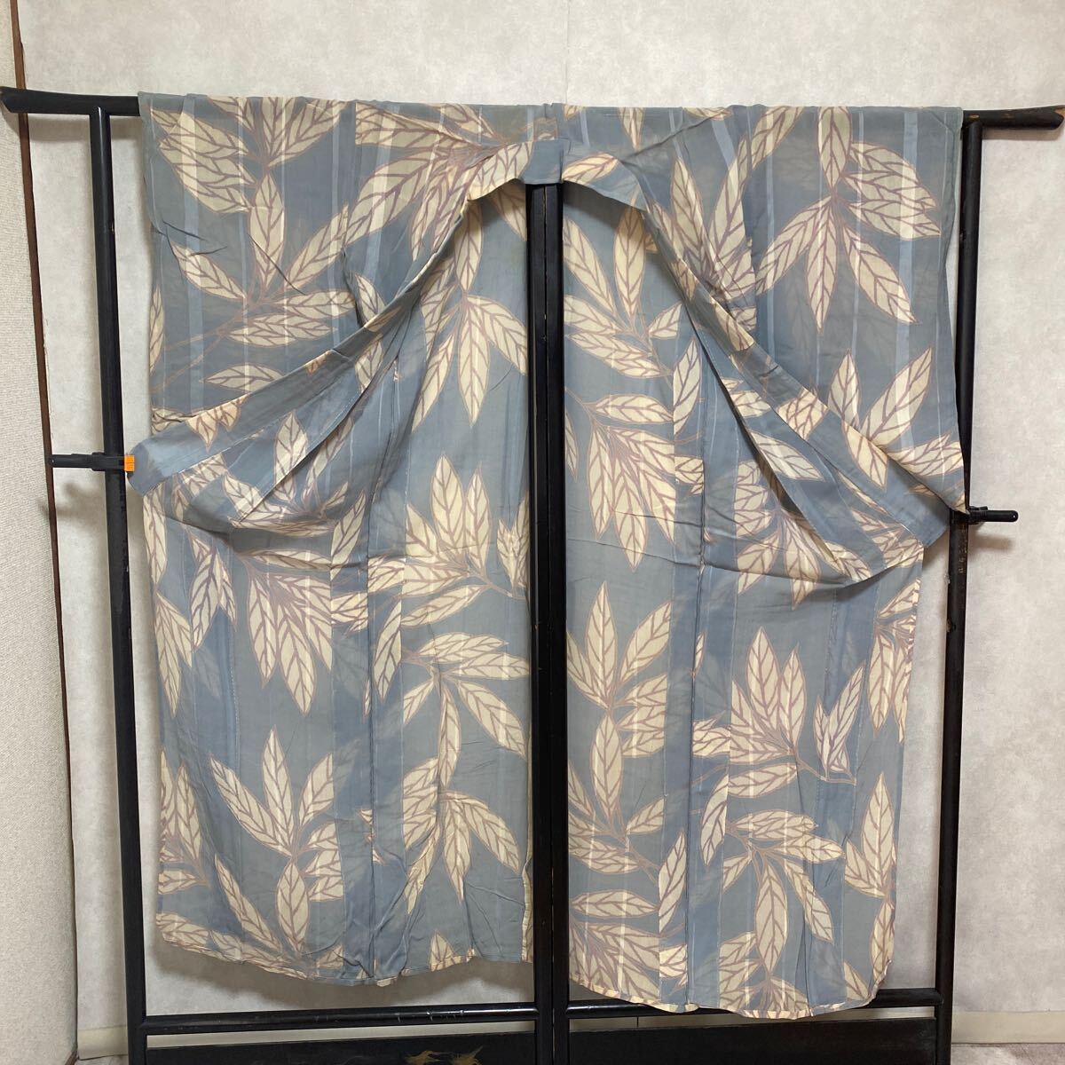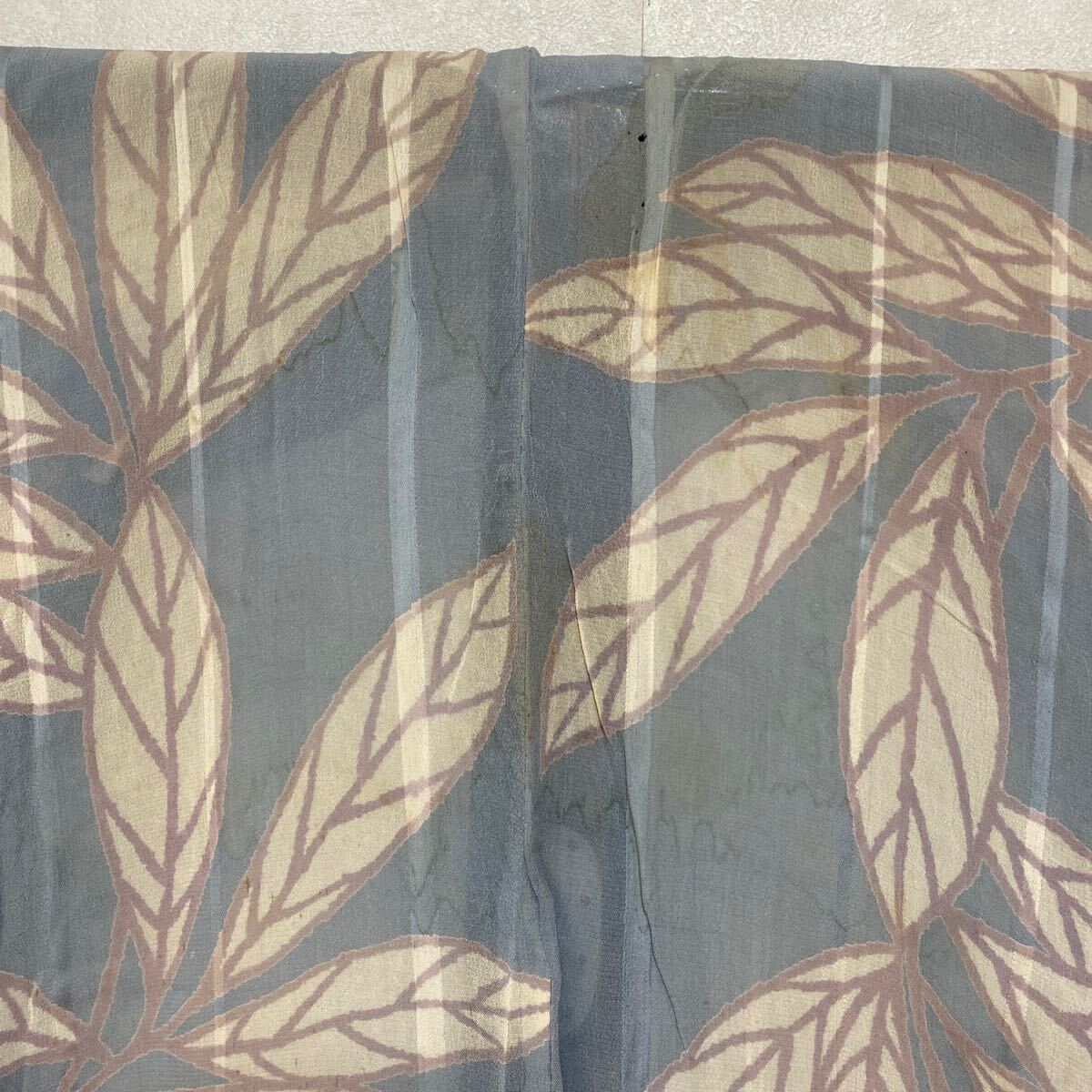 アンティーク 単衣 絽 紗 夏物 着物 正絹 昭和レトロ 大正ロマン モダン 和洋折衷コーデ リメイク 水色 葉 ふんわり か06-2w