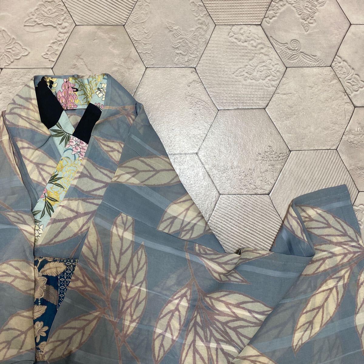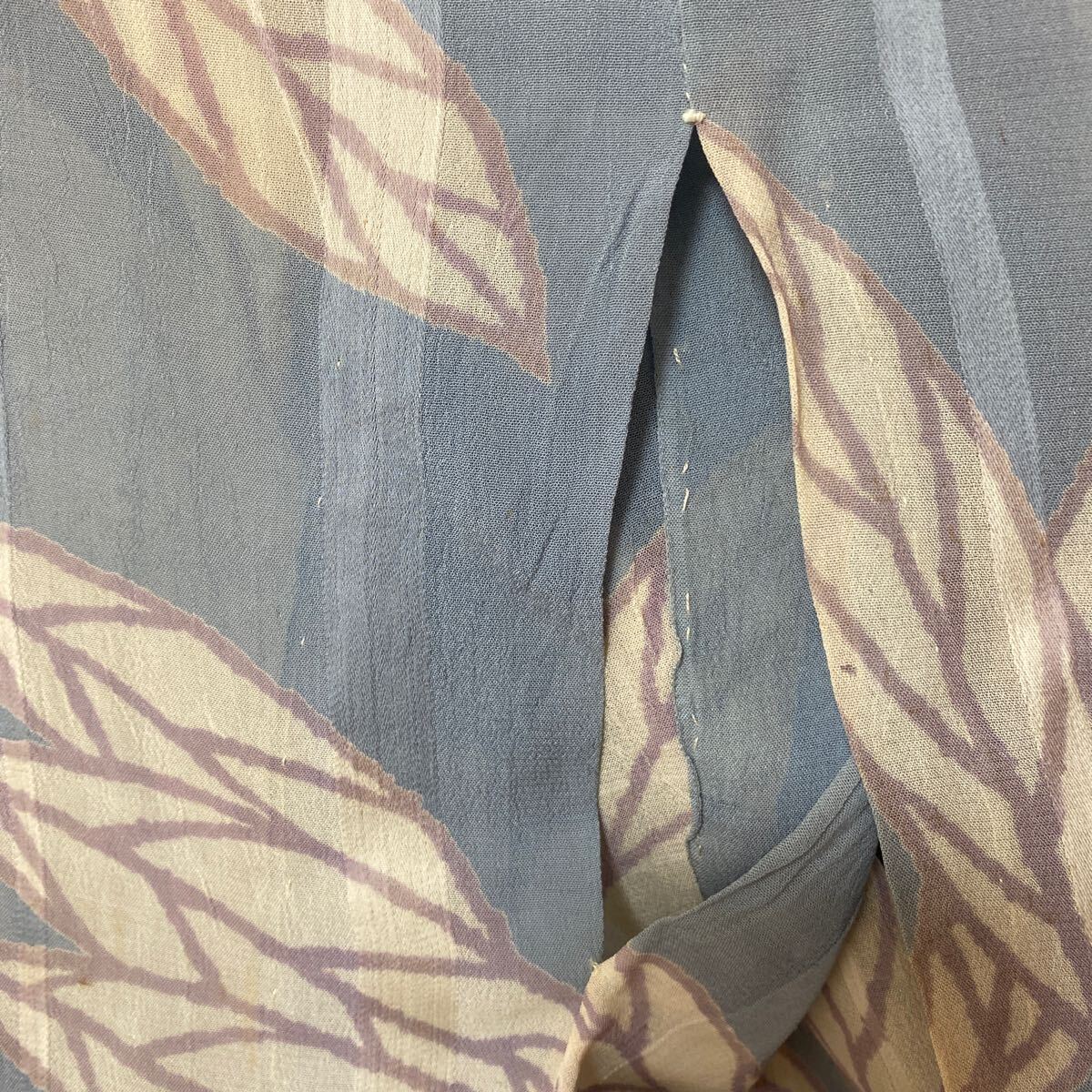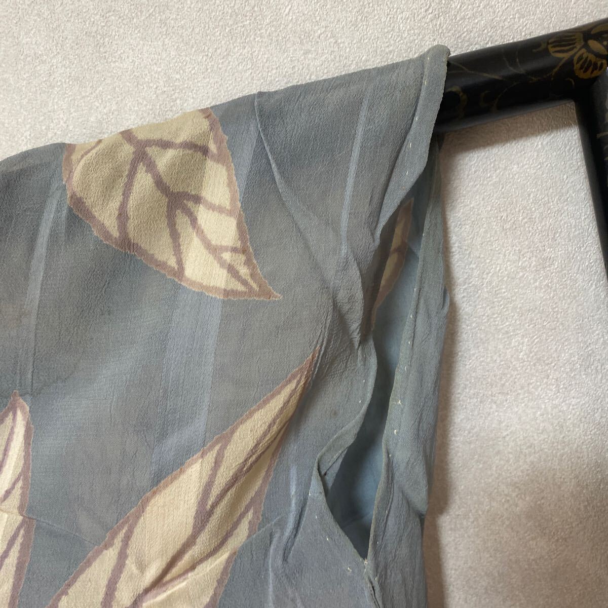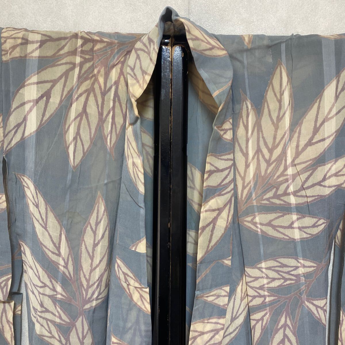 アンティーク 単衣 絽 紗 夏物 着物 正絹 昭和レトロ 大正ロマン モダン 和洋折衷コーデ リメイク 水色 葉 ふんわり か06-2w
