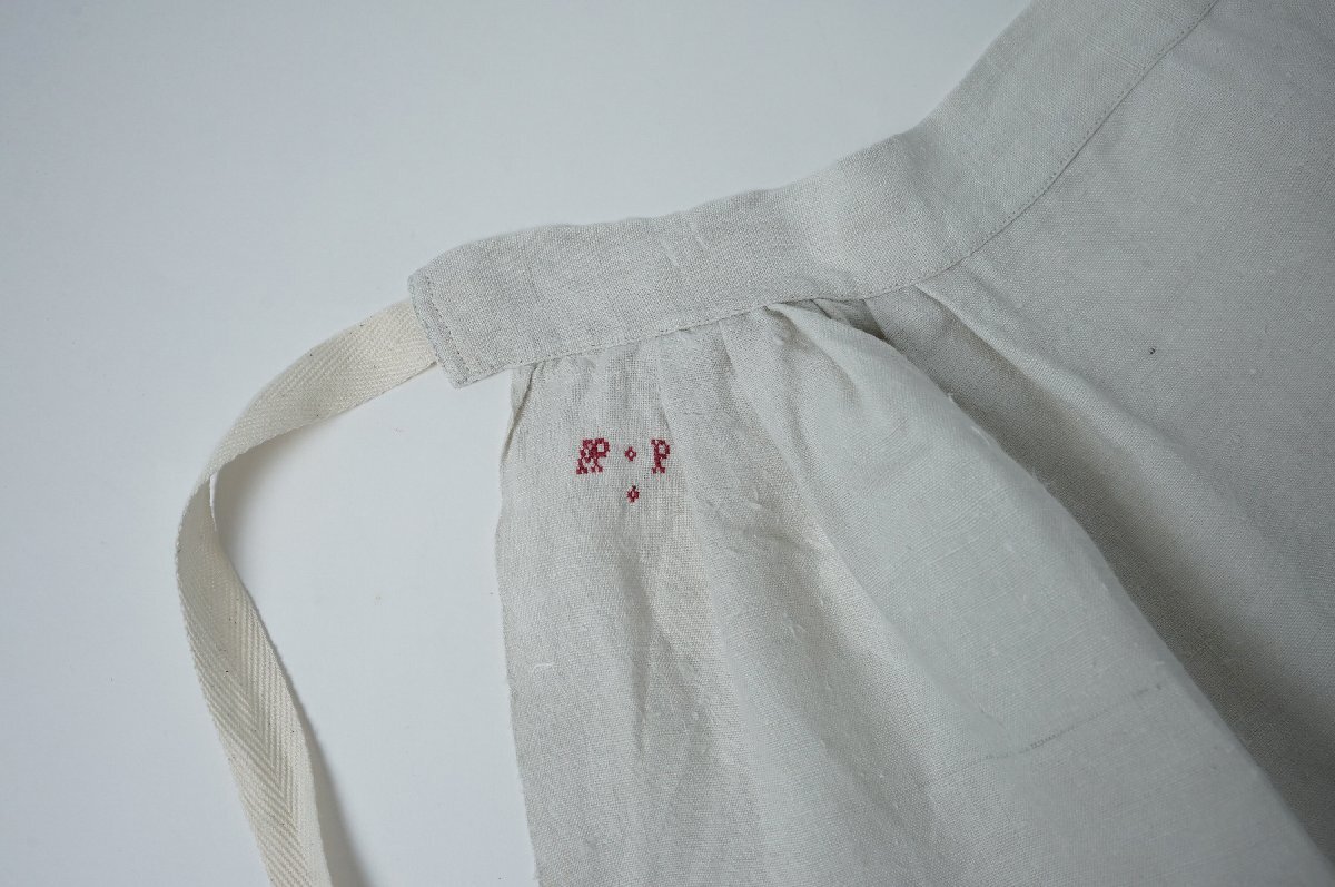 フランス アンティーク エプロン タブリエ リネン 麻 刺繍 [E634]