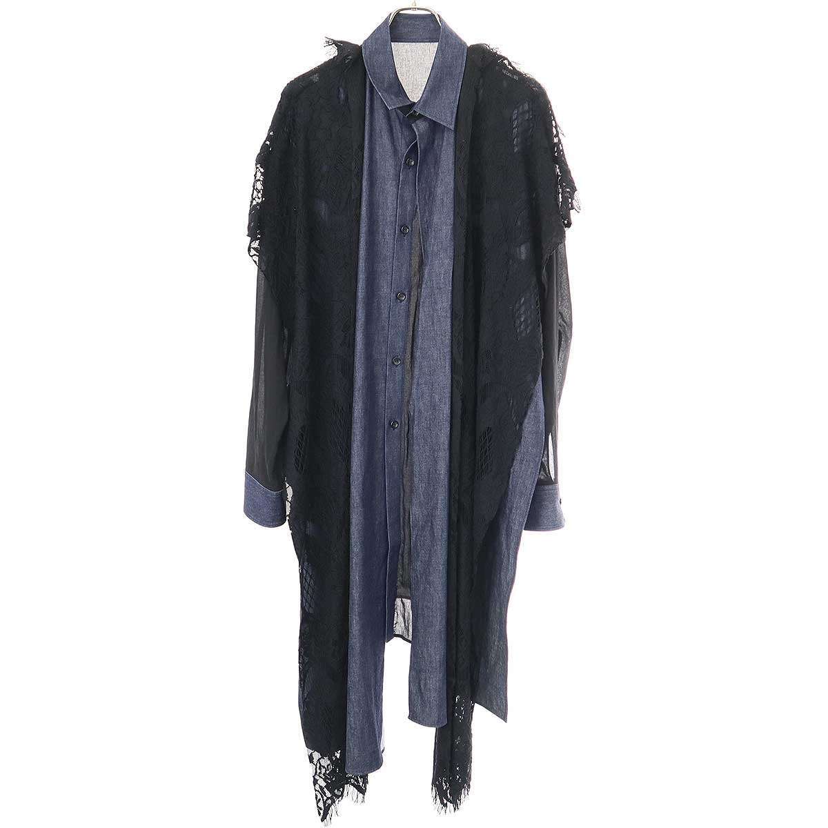 22AW デニムレースコンビネーション ロングアシンメトリーシャツ FE-B15-822
