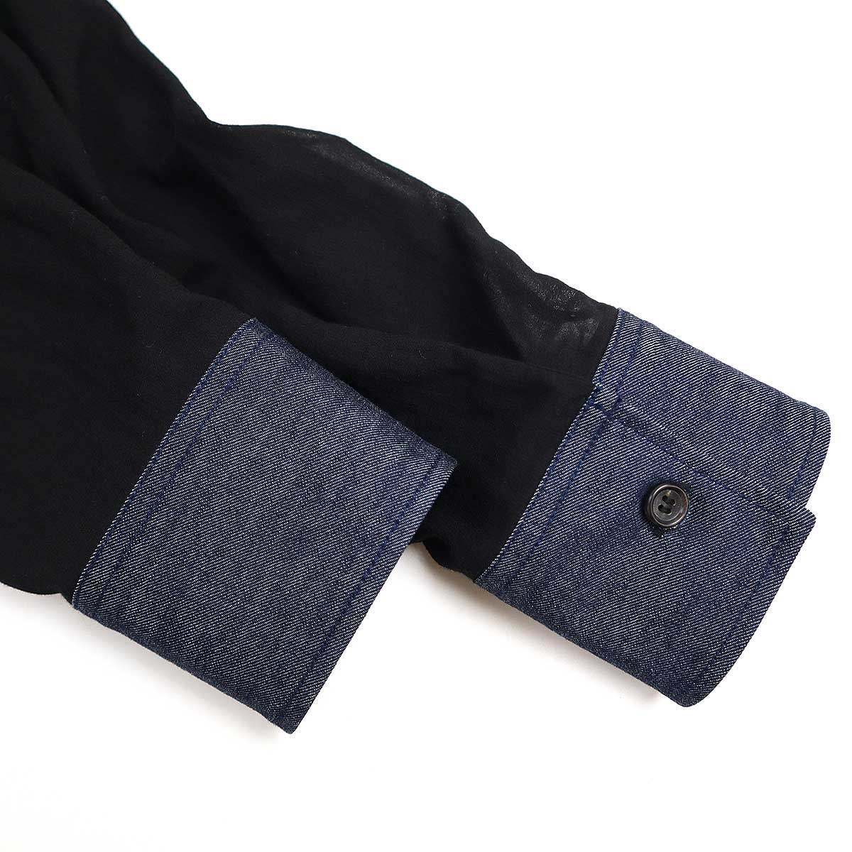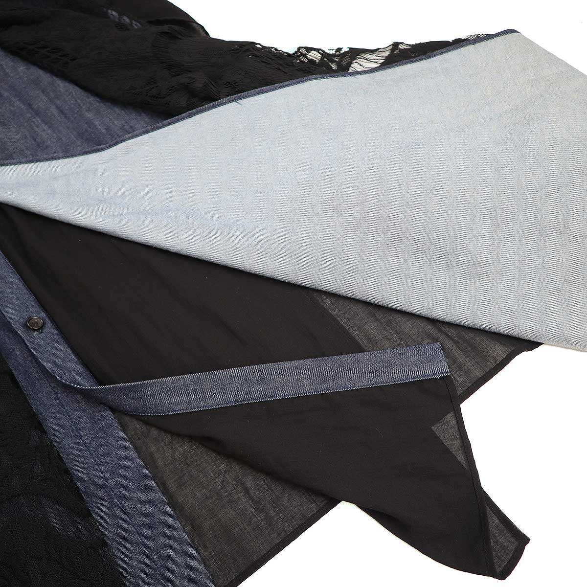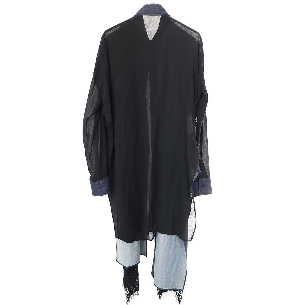 Yohji Yamamoto FEMME ヨウジヤマモト 22AW デニムレースコンビネーション ロングアシンメトリーシャツ FE-B15-822 ブラック インディゴ