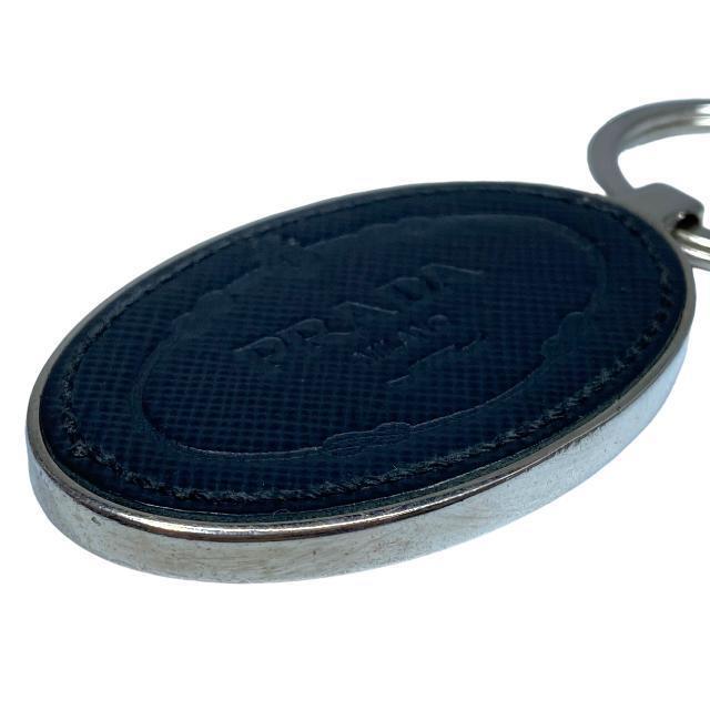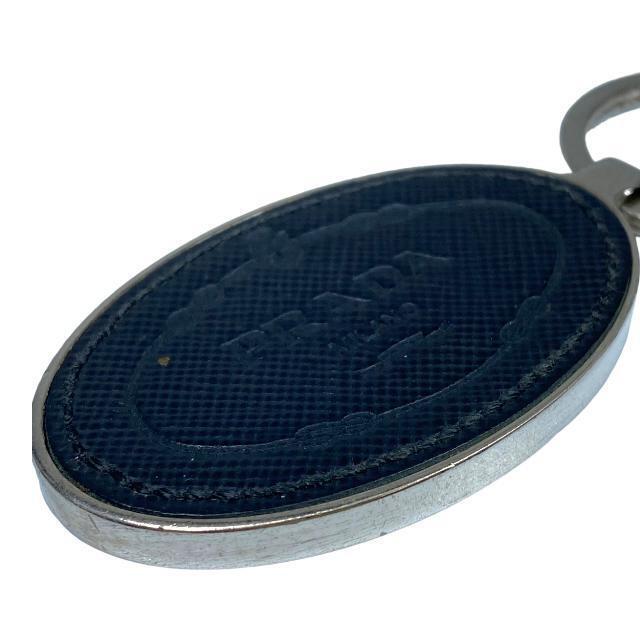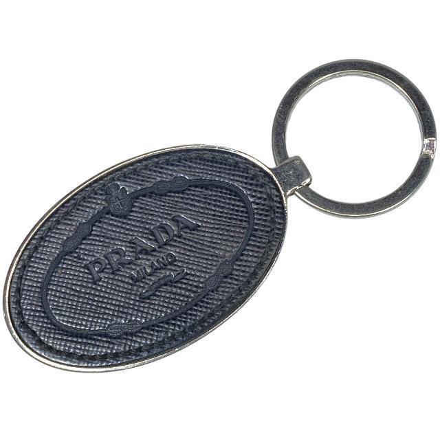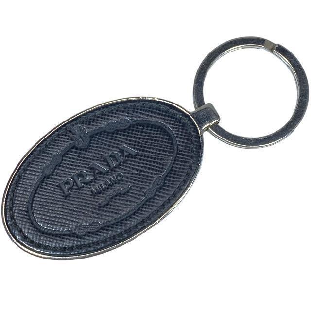 PRADA プラダ キーホルダー ロゴ型押し レザー メタル ブラック シルバー