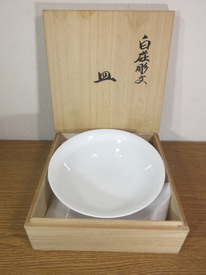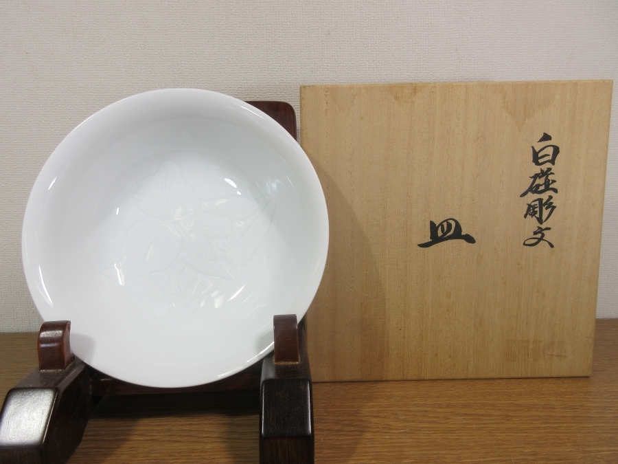 | 説明 | 佐賀県出身の陶芸家で人間国宝 井上萬二の『白磁彫文皿』無傷 共箱です。 状態は良好です。 このままで飾って楽しめますし、使用しても楽しめます。 高台内に「萬二」と銘があります。 真白で美しい白磁の地に、見込みに描かれた草花紋様が大変綺麗で上品な作品です。 コレクターの放出品です、画像で御確認下さい。 皿立ては、撮影の為に使用したもので、作品には付帯致しません。 ★九州地方の買出し品です。 買出したままでの出品です、御入札宜しくお願い致します。 入札は早めにお願い致します。 一人でも入札があれば梱包作業に入りますので、素早い発送が可能です。 早期終了あり。 井上萬二は、 昭和後期-平成時代の陶芸家。 昭和4年3月24日生まれ。 佐賀県出身。 12代酒井田柿右衛門, 初代奥川忠右衛門に師事し、 昭和46年独立。 白磁の伝統技法を駆使し,独自の作風を確立した。 44年,58年アメリカで作陶を指導。 平成7年白磁で人間国宝。 9年有田陶芸協会会長。 日本工芸会参与。 |
