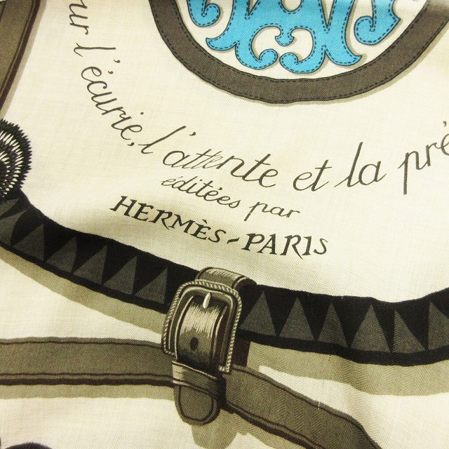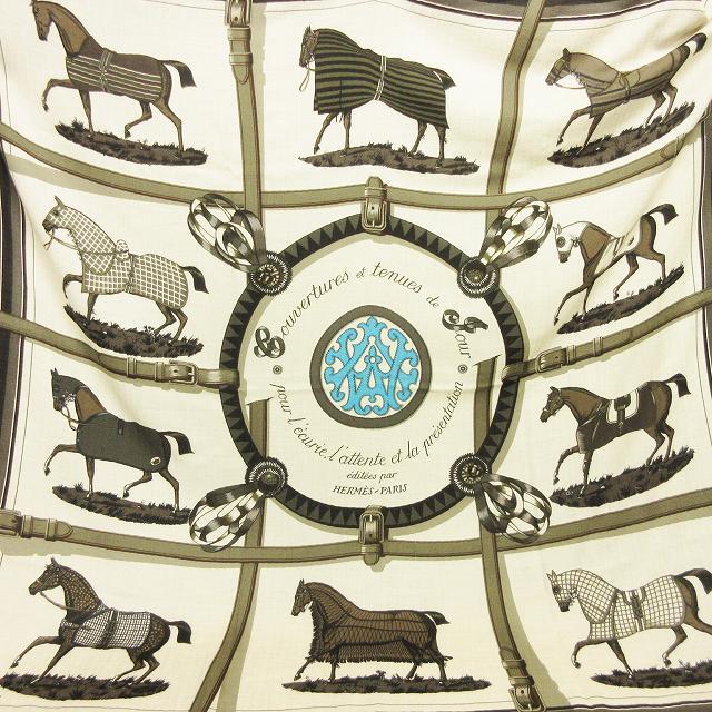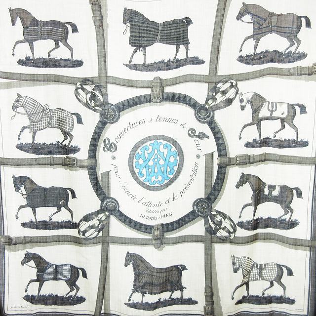エルメス COUVERTURES ET TENUES カレジュアン 140 カシミヤ シルク混 スカーフ 馬着 大判 グレー 小物 ☆AA★ レディース