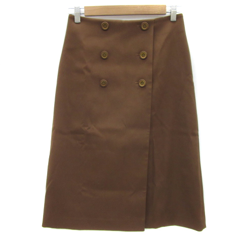 ポールスチュアート PAUL STUART フレアスカート ミモレ丈 ダブルボタン 6 M 茶 ブラウン /YS39 レディース