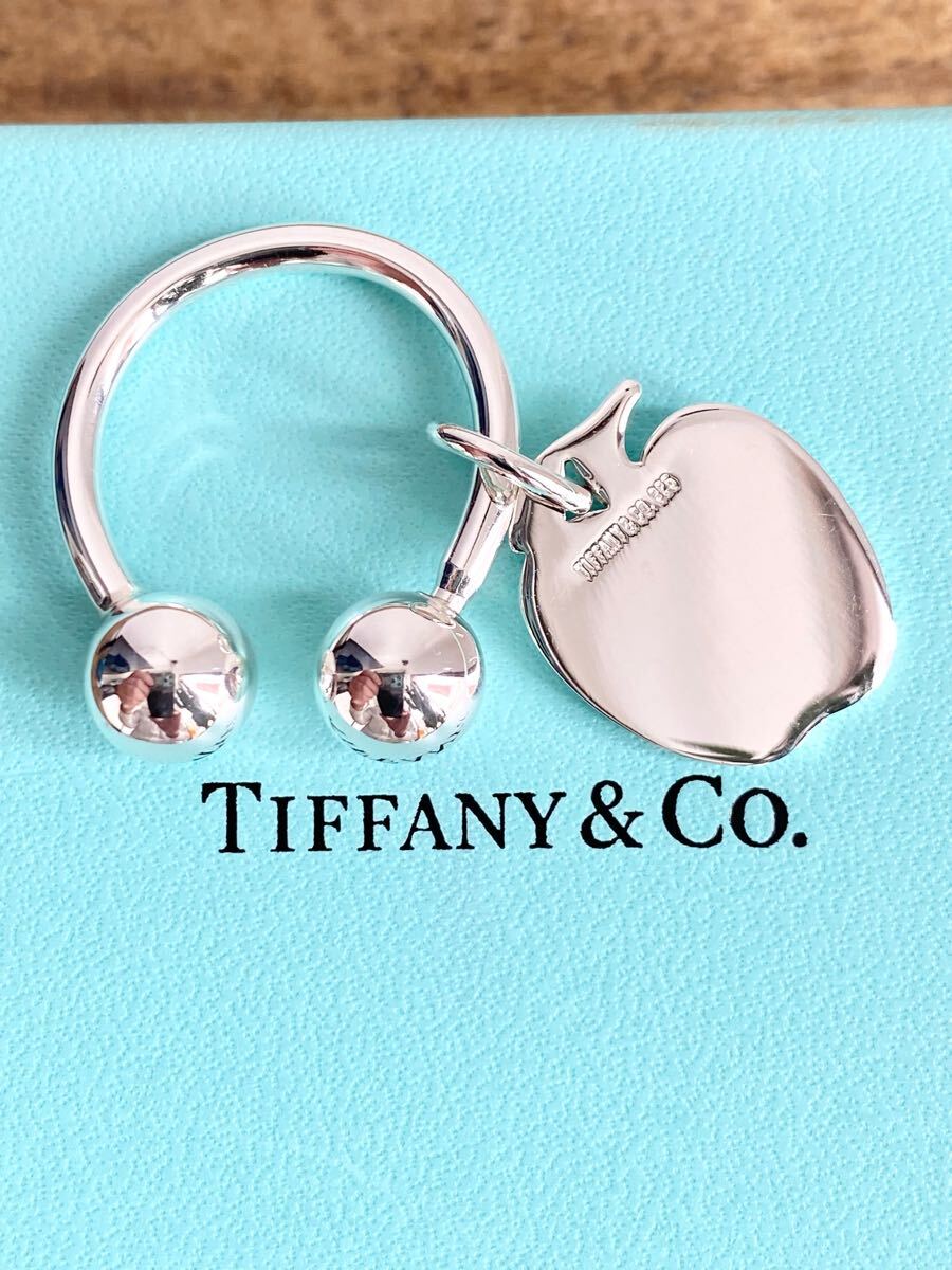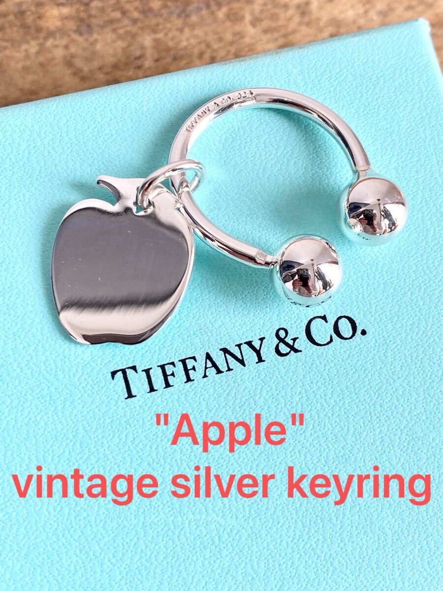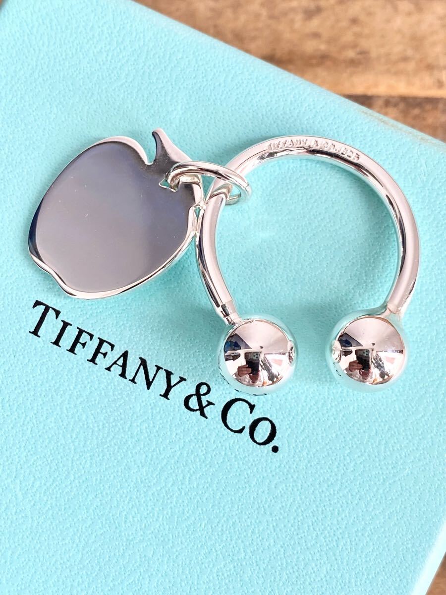 ☆送料無料☆ 鏡面磨き仕上げ TIFFANY ティファニー ヴィンテージ キーリング シルバー キーホルダー アップル リンゴ 林檎 タグ Ag925