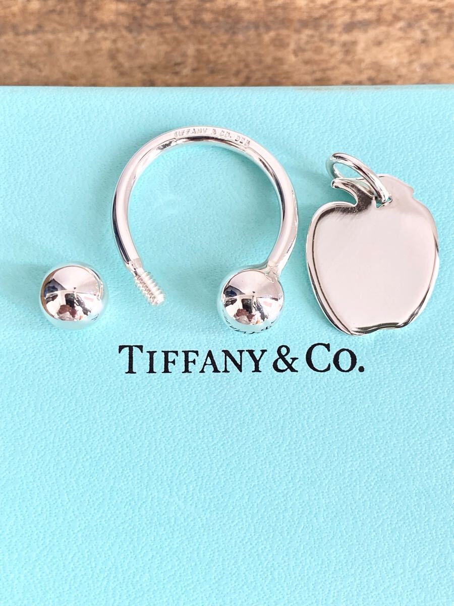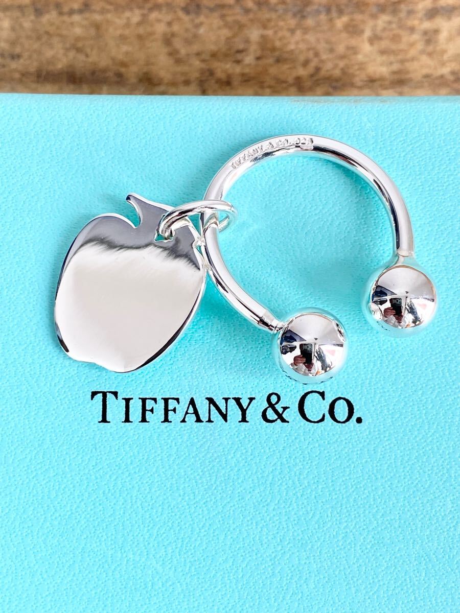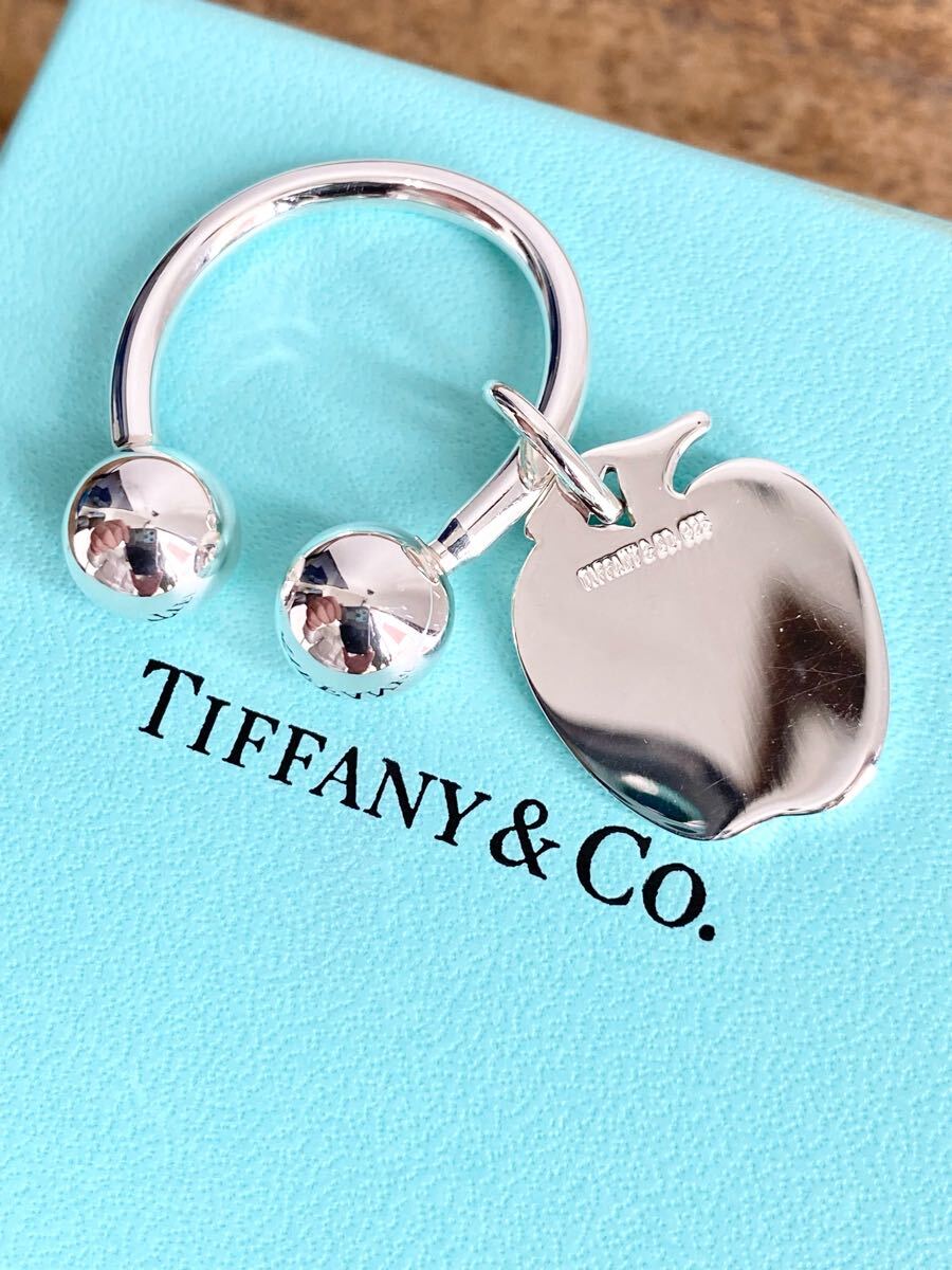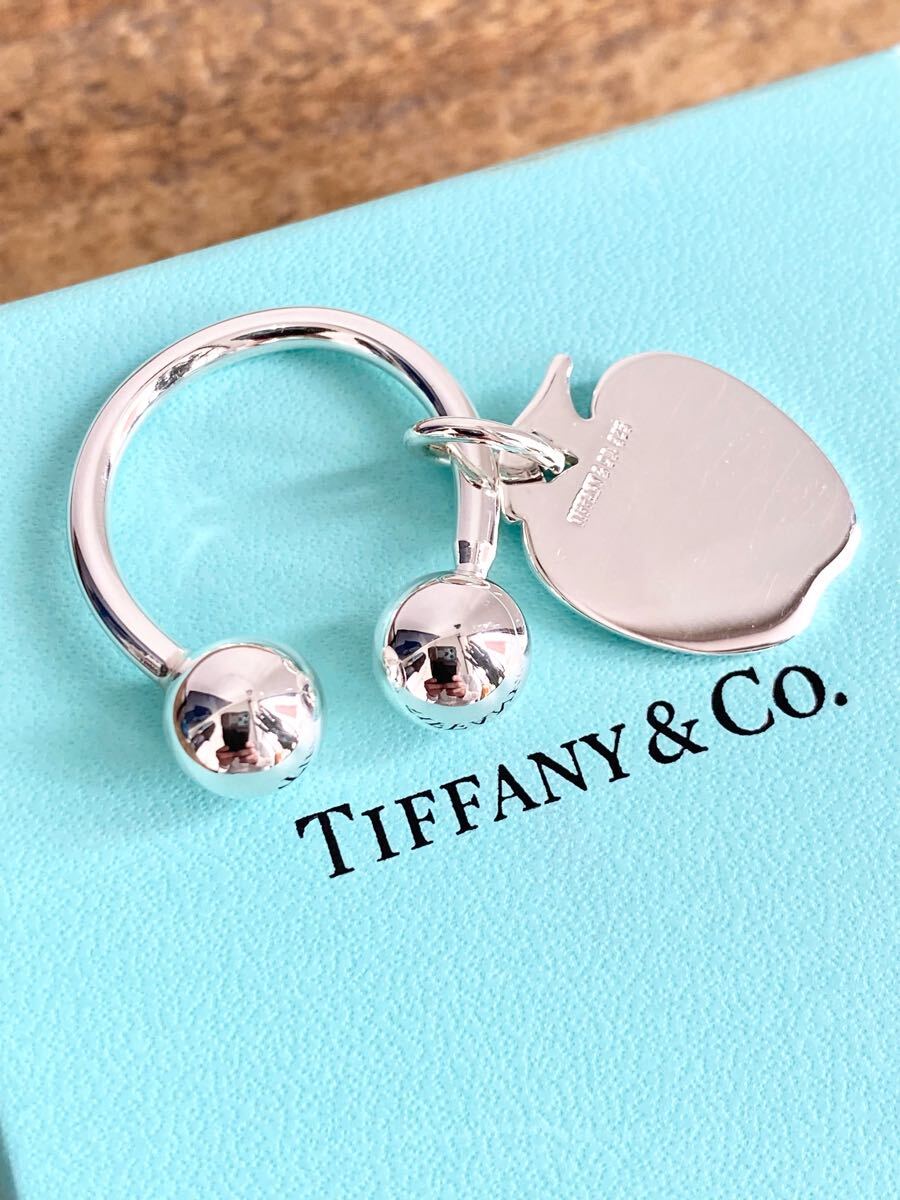 ☆送料無料☆ 鏡面磨き仕上げ TIFFANY ティファニー ヴィンテージ キーリング シルバー キーホルダー アップル リンゴ 林檎 タグ Ag925