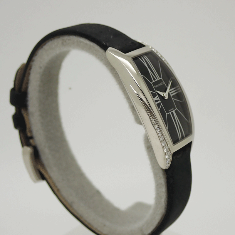 商品名 TIFFANY ティファニー ジェメア Gemea 750 WG クオーツ レディース 腕時計 Z6400.10.40F10A40E ダイヤベゼル 中古 送料無料!!