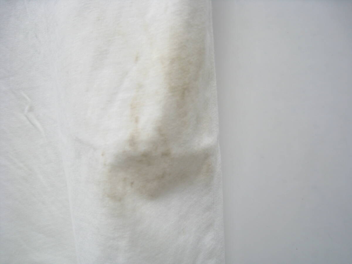 襟にスレがあり、後身頃に2mm程の穴、薄汚れがあります。