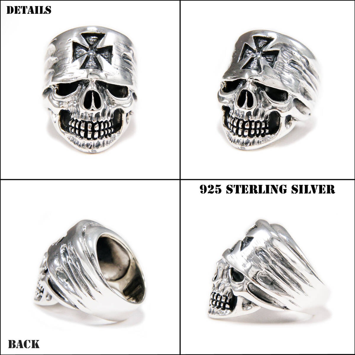 32号 スカル ドクロ マルタクロス バンダナ 925シルバー リング 925刻印あり TAN-R015