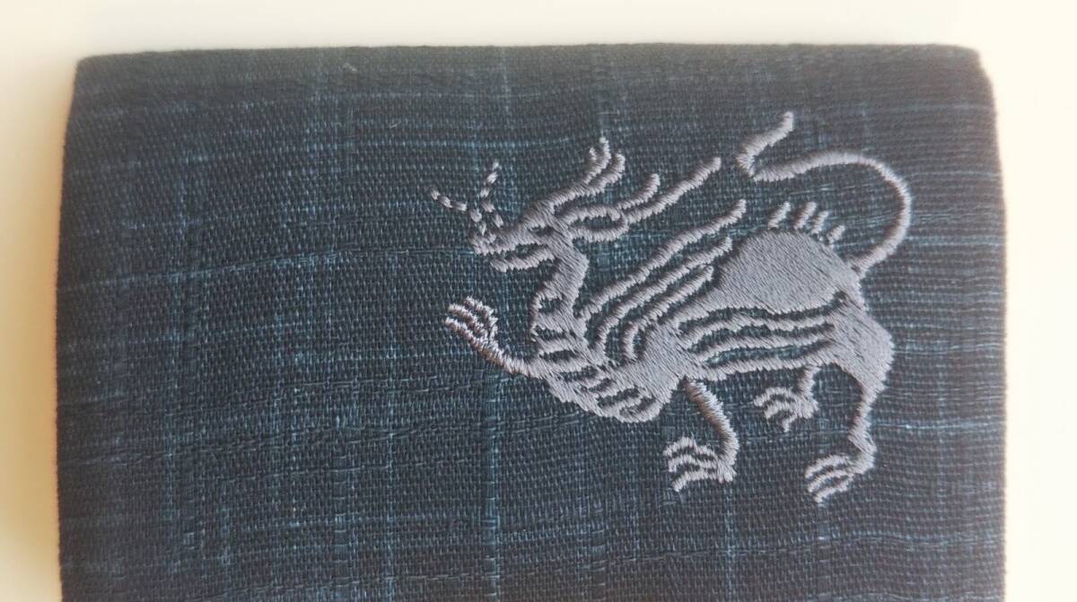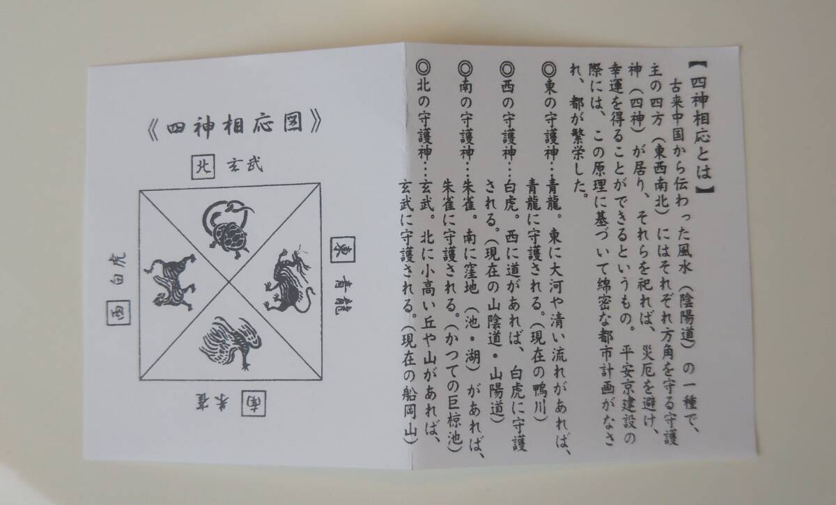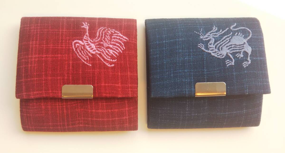 こちらの小銭入に刺繍されている四神とは古来中国から伝わった風水の一種で、主に東西南北にはそれぞれ方向を守る守護神が居りそれらを祀れば、災厄を避け、幸運を得ることができるというものです。平安京建設の際にはこの原理に基づいて綿満な都市計画がなされ、都が繁栄しました。