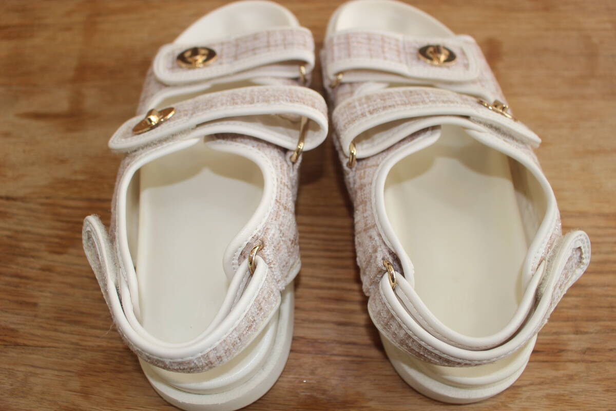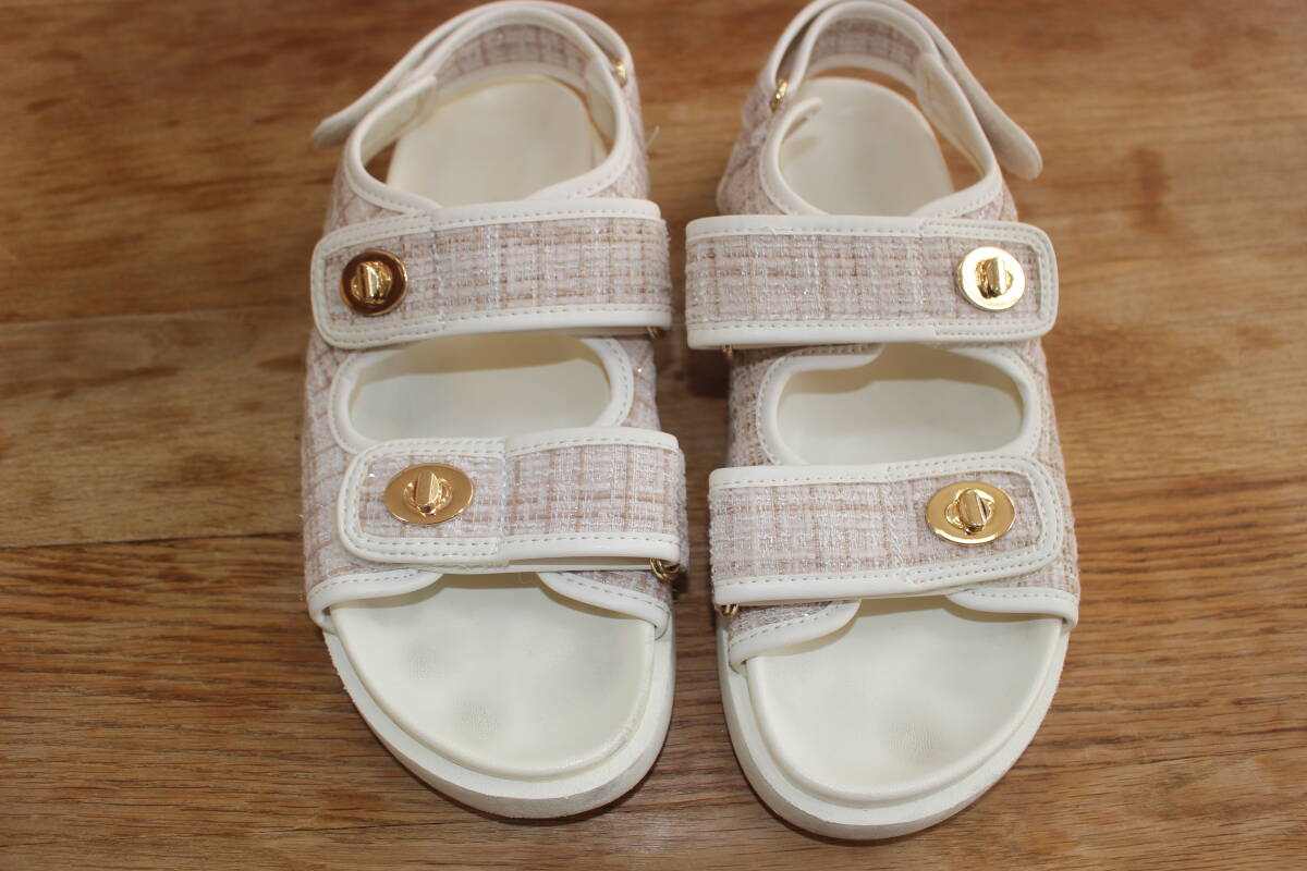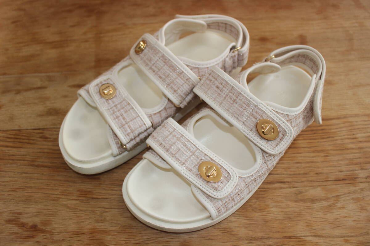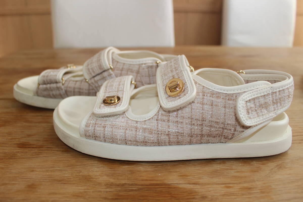 ■■H&M■■10回未満着用 ツイードサンダル(39・24.5)ローヒールペタンコエレガントコンサバ