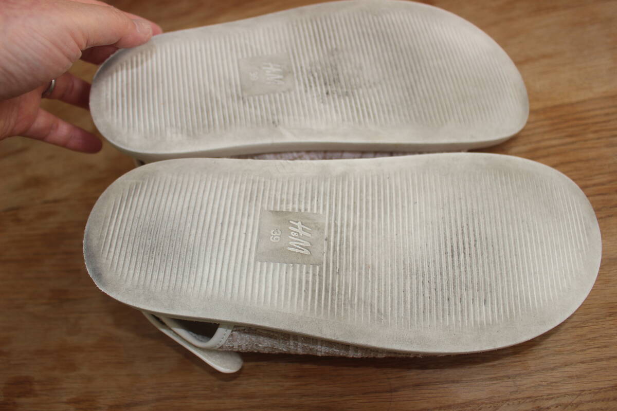 着用感・シミ・汚れ。ご覧の通りです。ツイード生地を使っている為、出品に際し洗濯機で洗濯しました。靴底などは傷がつかないようにブラシなどで洗うことをしていません。なので、もう少し汚れが落ちる可能性はあります。念入りにチェックしましたが、見落としがありましたら申し訳ありません。
