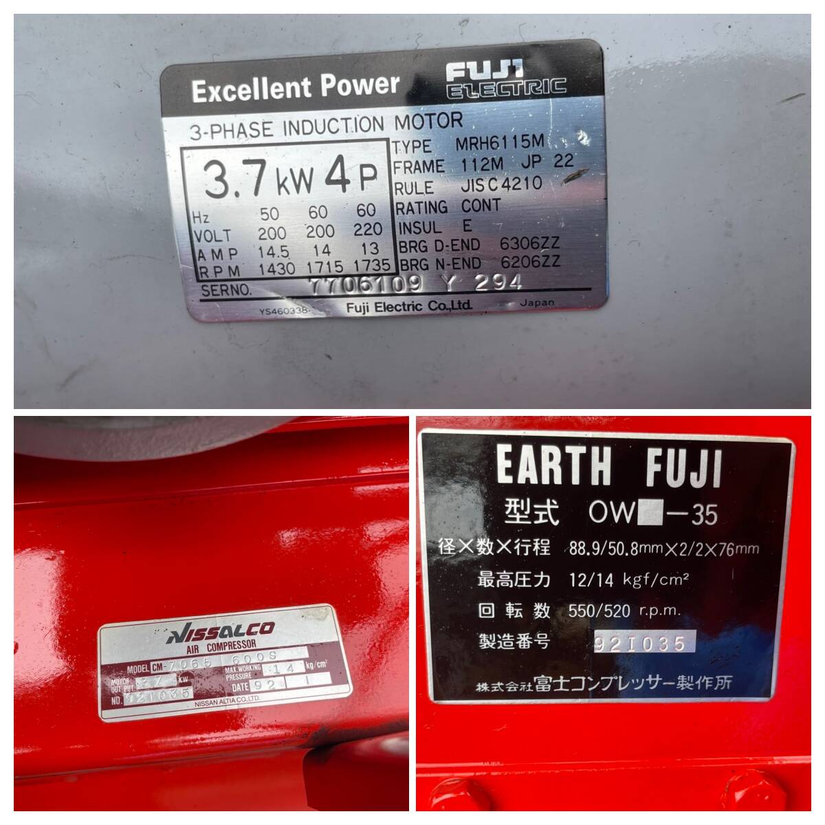 NISSALCO ニッサルコ ALTIA 三相200V 3.7kW エアコンプレッサ 富士コンプレッサ製 CM-7065-600S (正常動作)