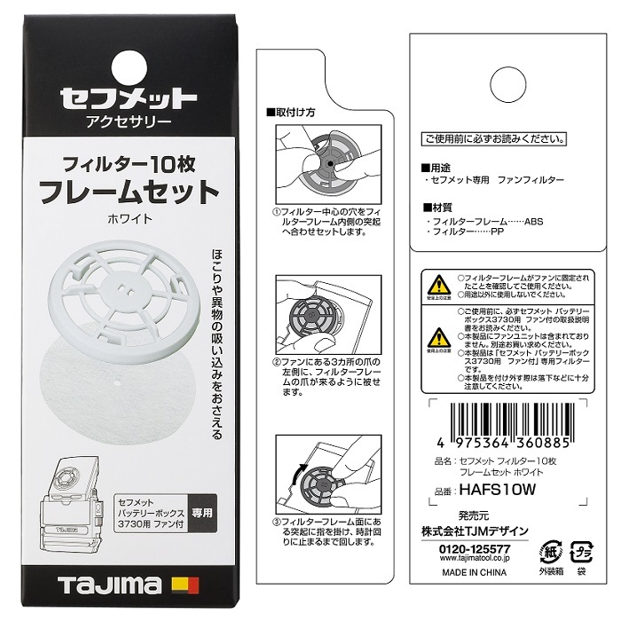タジマ(TJMデザイン)製のセフメット専用 ファンフィルター10枚+フレーム白セット のHAFS10Wです。