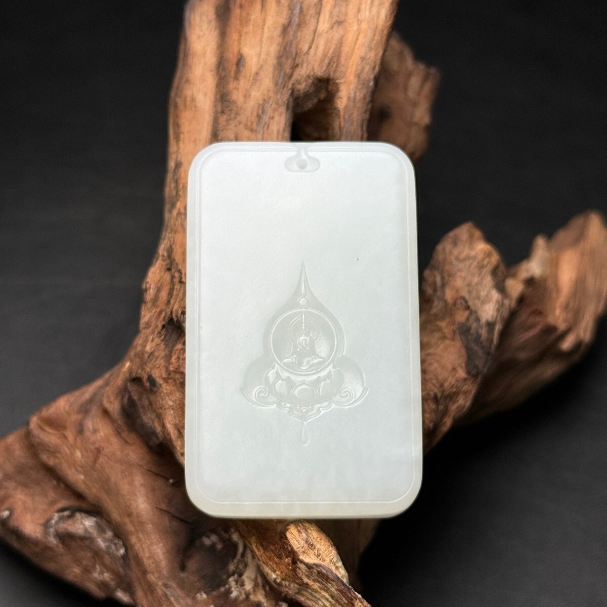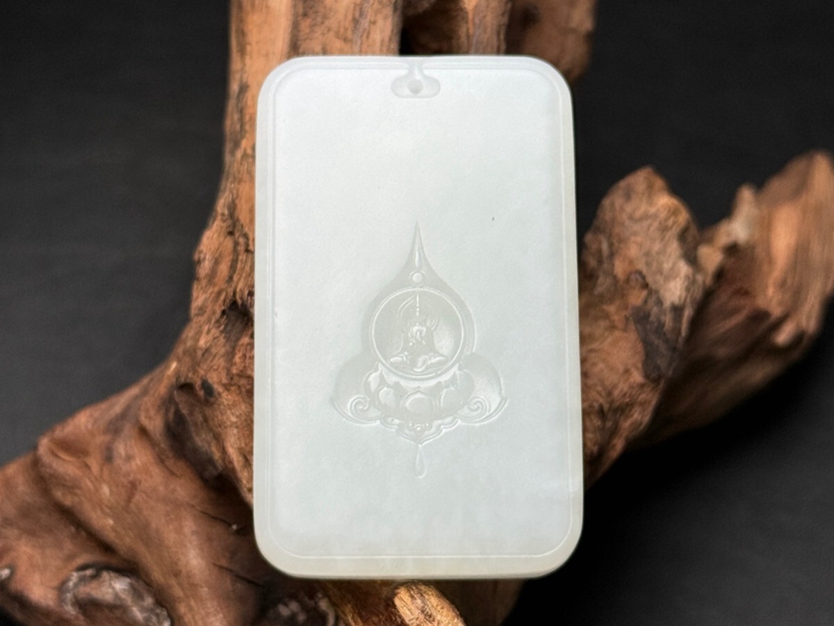 時代物 和田玉 白玉彫 護佑平安順遂 悟道玉牌【仁】極細工 手彫り 裝身具 古賞物 中国古美術 蔵出