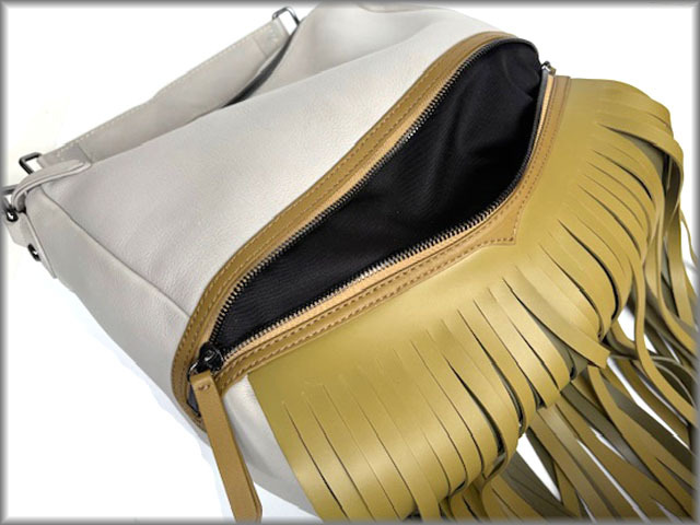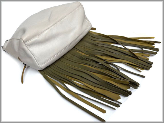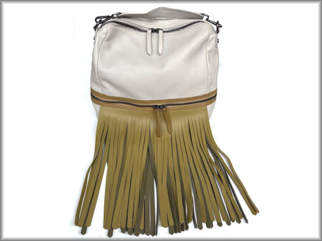 ファスナーの下に長いフリンジが二重に付いています。好きな長さにカットも可能だそうです。