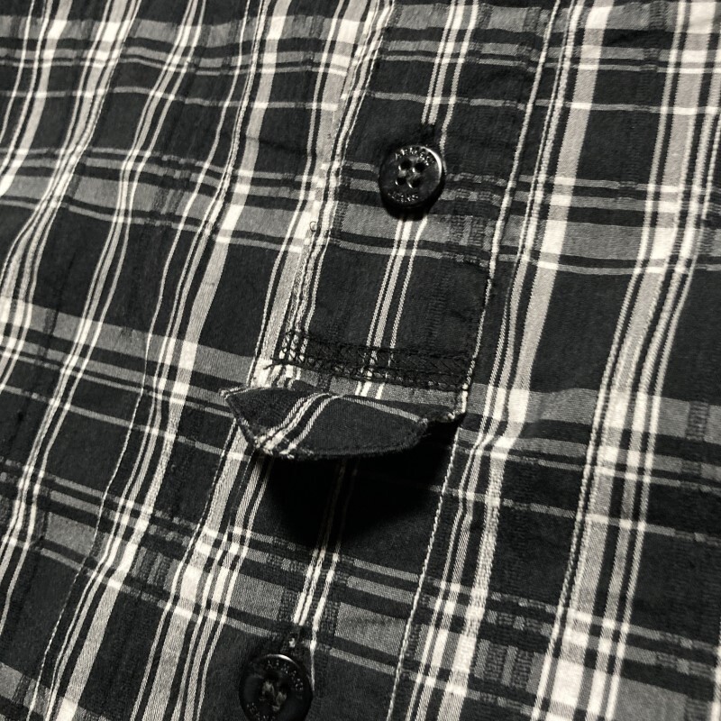 ARMANI JEANS★90s~00sアーカイブ★快適ストレッチ 長袖チェックシャツ ヴィンテージ&ワーク型 黒 M Y2K アルマーニ ジーンズ ARCHIVE