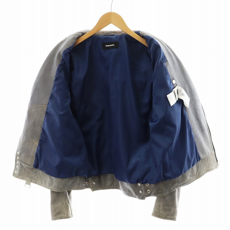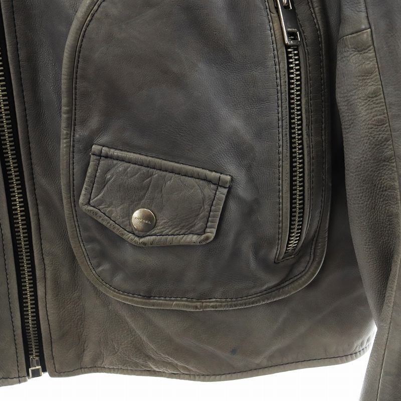 ディーゼル DIESEL L-KIOV ライダースジャケット ダブル 牛革 ユーズド加工 M グレー /AN19 メンズ