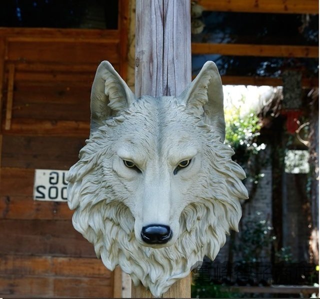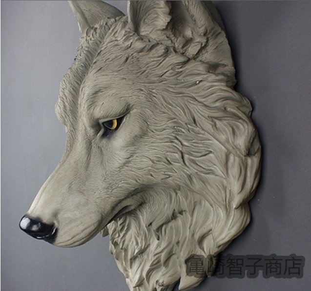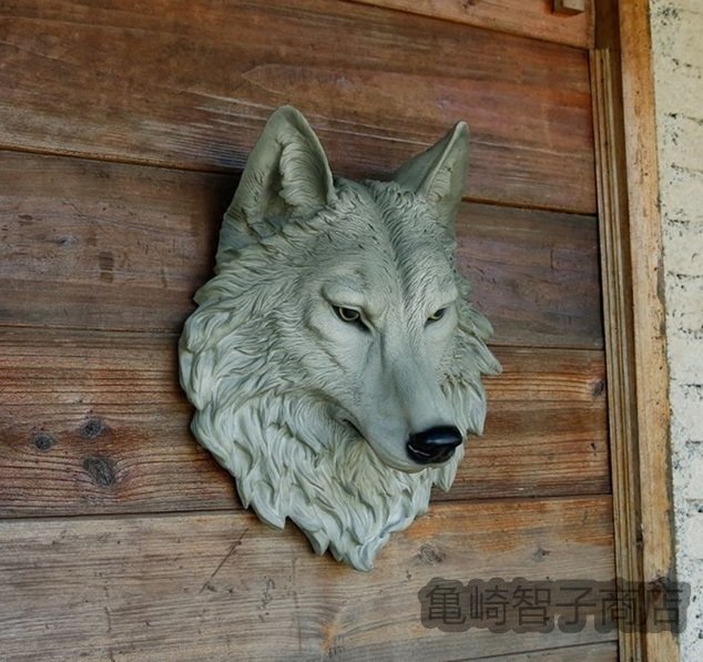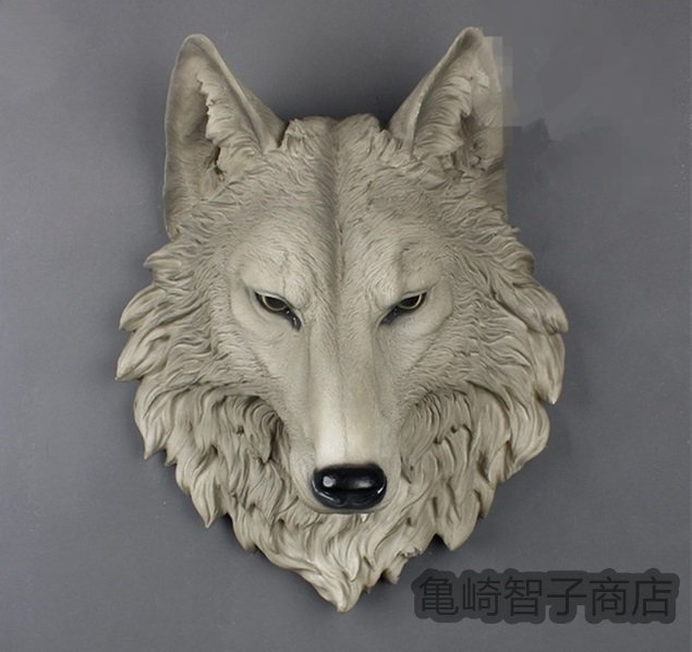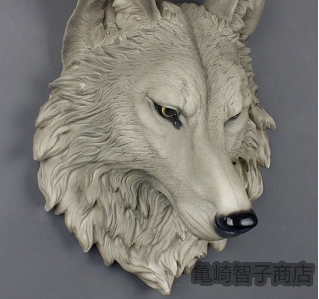 ウルフ・ヘッド 壁掛けオブジェ インテリア美術品アートホームアクセサリー贈り物レジン製 狼 ワイルド
