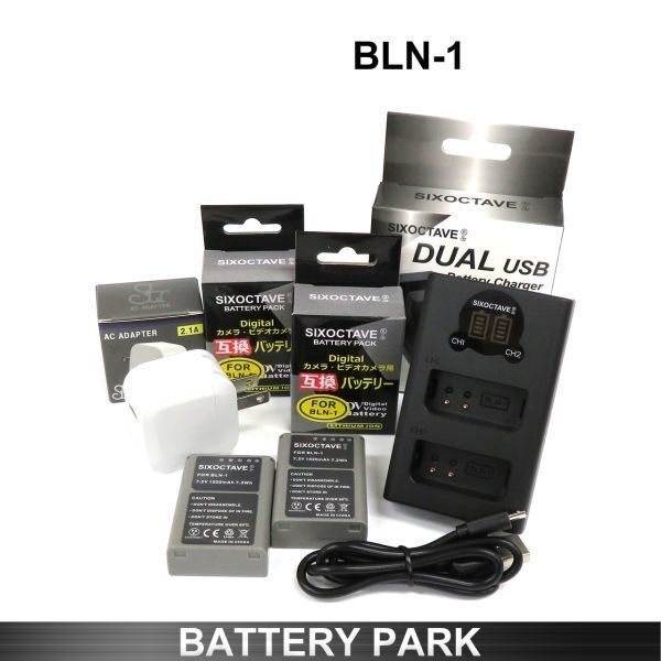 オリンパス BLN-1 互換バッテリー2個と互換充電器 BCN-1 2.1A高速ACアダプター付 PEN E-P5 PEN-F