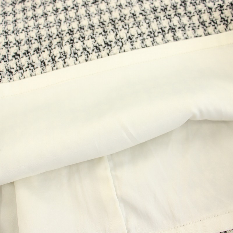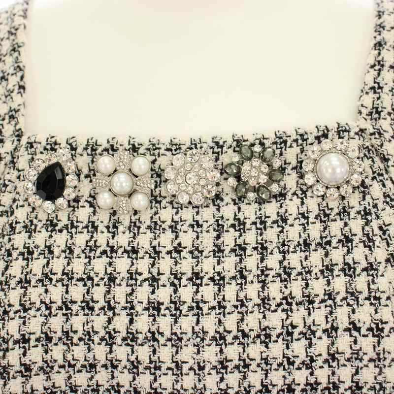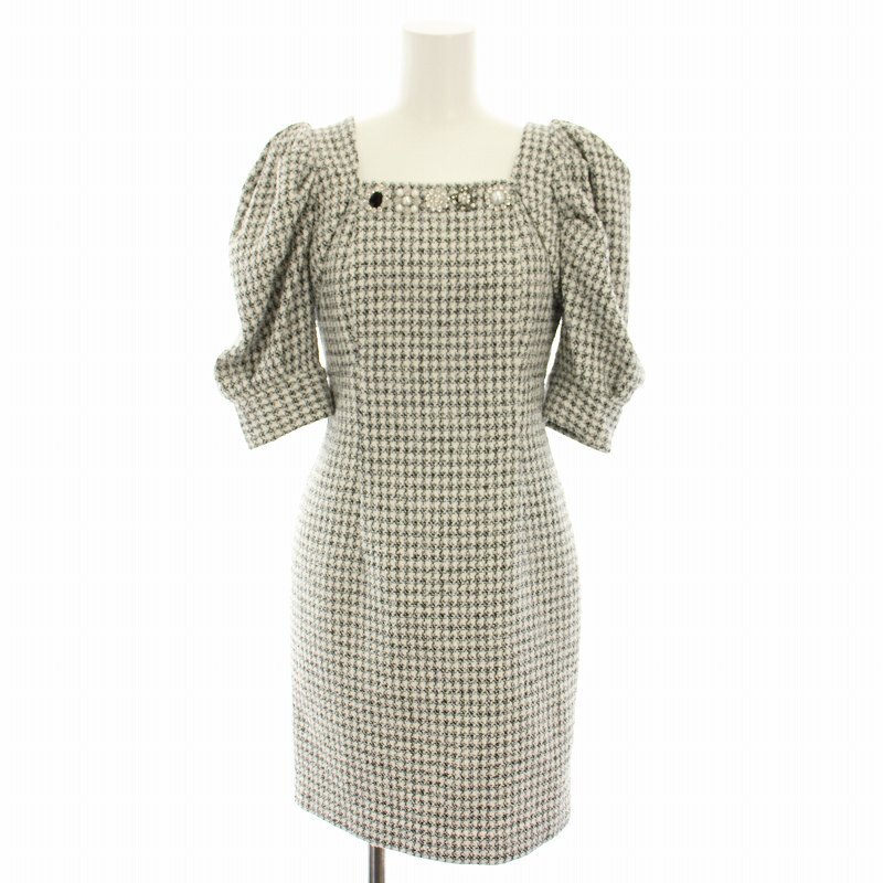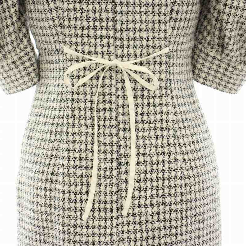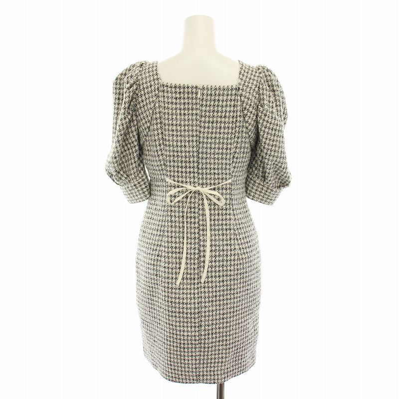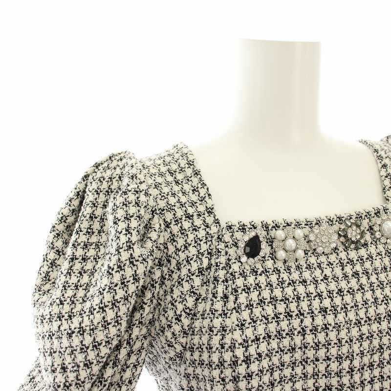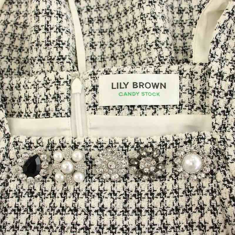 リリーブラウン Lily Brown 23SS ビジュー釦ミニワンピース 五分袖 千鳥格子柄 0 黒 ブラック 白 ホワイト LWFO231811 /YT レディース