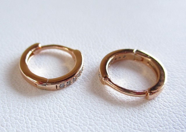 複雑なカットで美しい輝きを放つキュービックジルコニアのフープピアスになります。