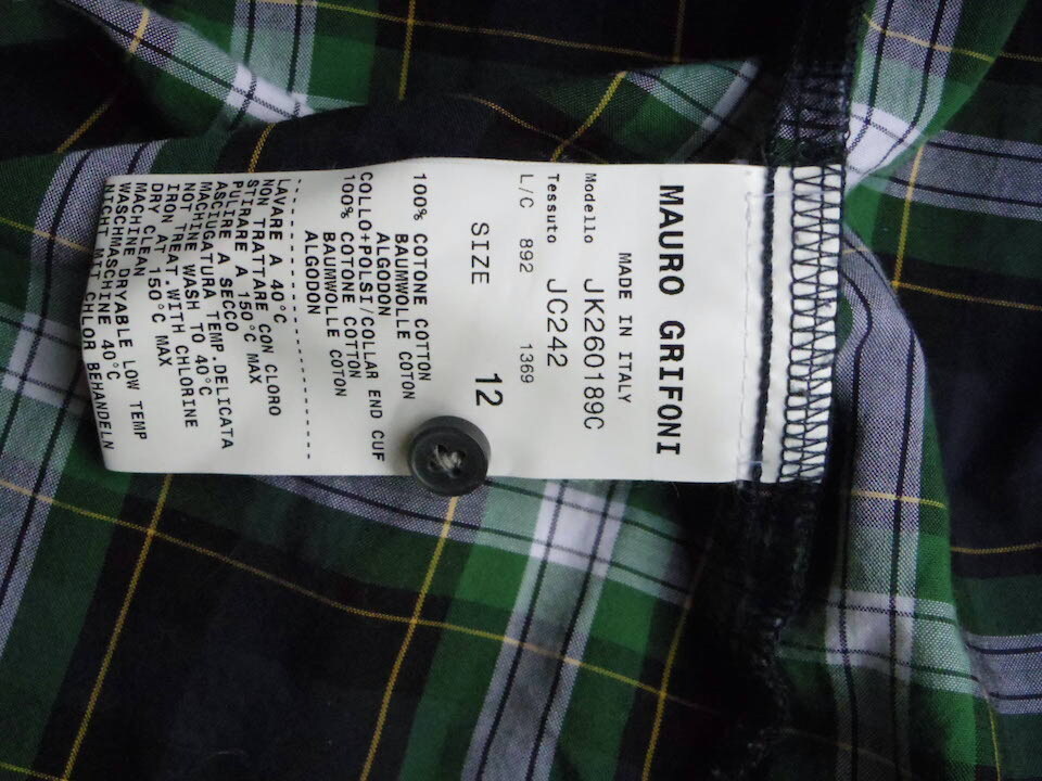 マウログリフォーニ シャツ  MAURO GRIFONI ネイビー/グリーンチェック 白襟のクレリック イタリア製 ギンザのサエグサ 12