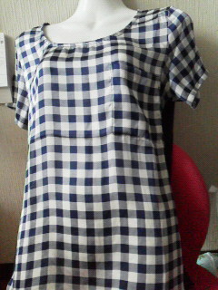 ●新品ネービーホワイトチエックお袖デザインMサイズ