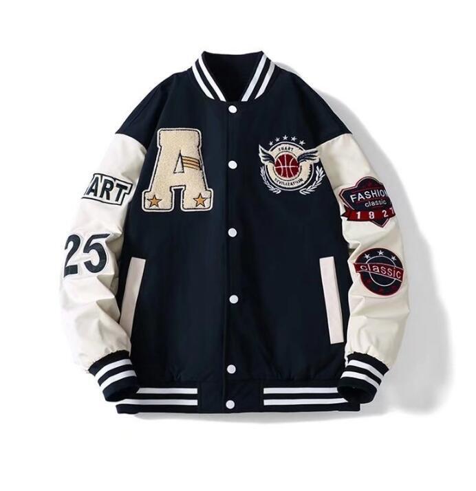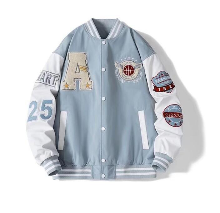 高品質2XLサックスブルー スタジャンメンズ ブルゾンアウター 刺繍入りバックプリント カレッジ 切り替え 配色 アメカジ スポーツ 春 秋 冬