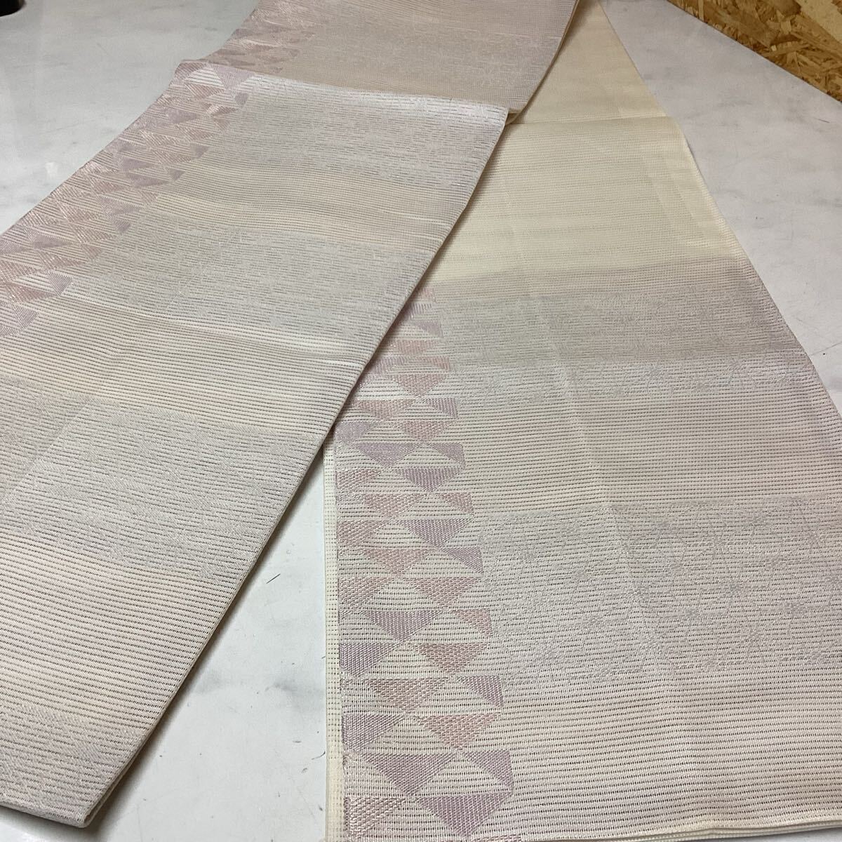 和装 着物 帯 薄いベージュ 白 上品 エレガント 模様あり (と58)