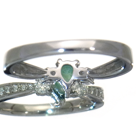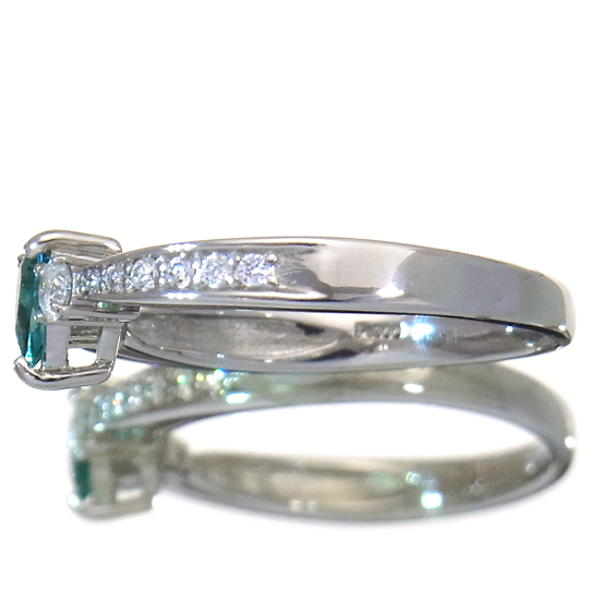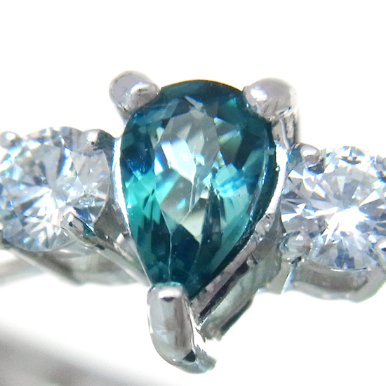 コメント | 1902年にマダガスカル南部で発見された超稀少石、グランディディエライトを使用したリングです。角度によって色が変わって見える多色性が強い石のため、様々な表情をお楽しみいただけます。モースコード7.5のため、普段使いにもご使用いただけます。当社所見でございますが、脇石のダイヤモンドはG~Hカラー、SIクラスと思われます。日独宝石研究所鑑別書付き | ||