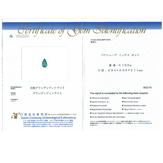 付属品 | 日独宝石研究所鑑別書・当店ボックス | ||
