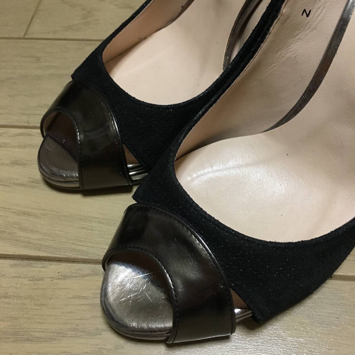 VIVA ANGELINA オープントゥ ヒールパンプス 黒×シルバー 23cm レディース