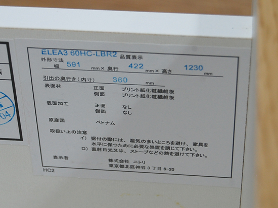 NITORI 6段 チェスト エレア3 幅60×奥42×高124cm ライトブラウン系 たんす タンス 箪笥 ニトリ ELEA3 札幌市