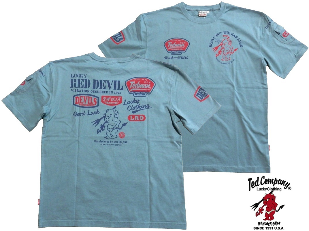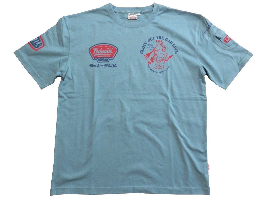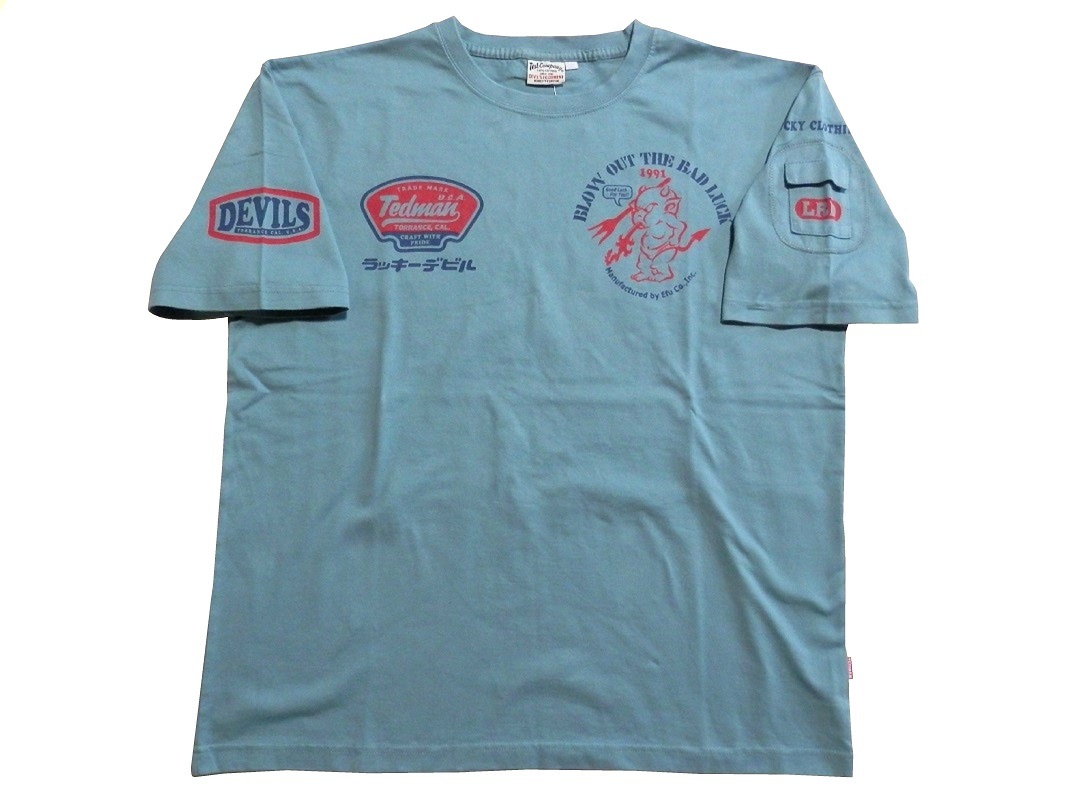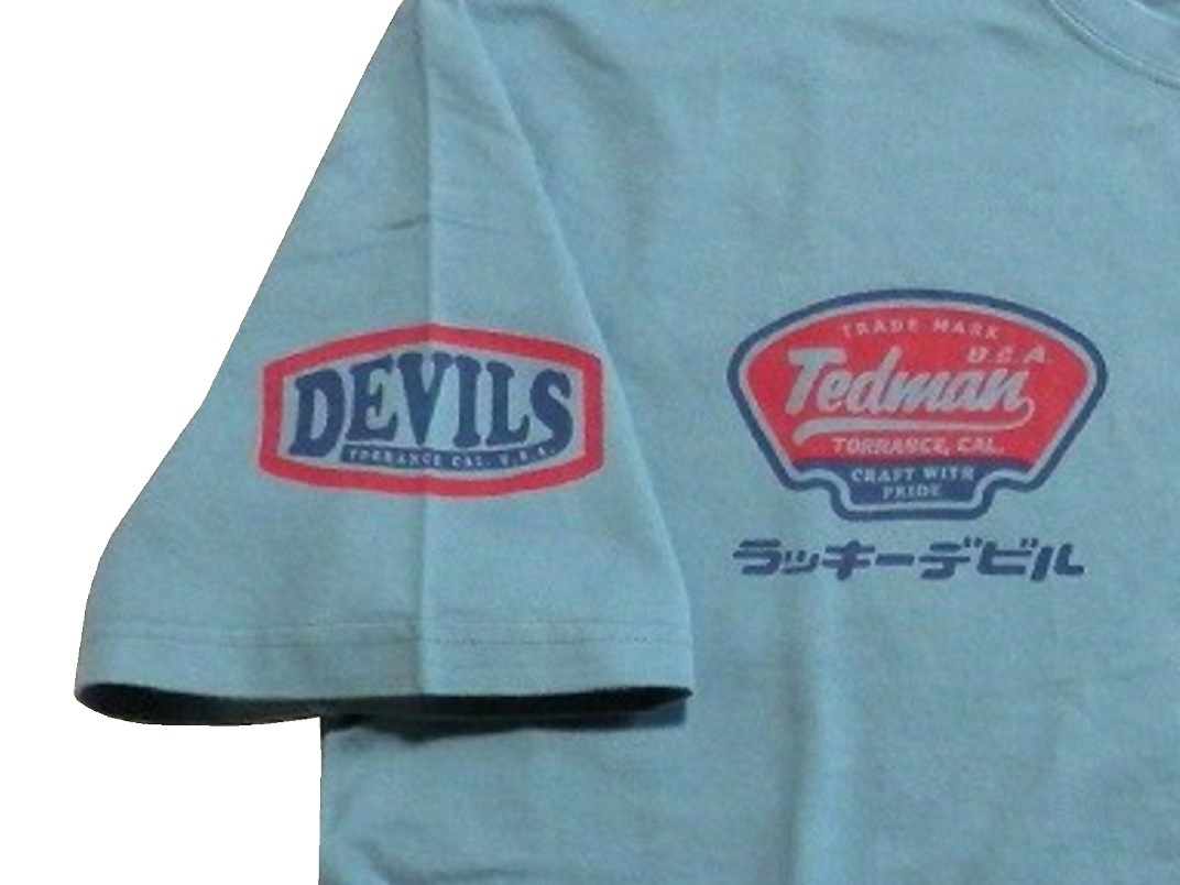 テッドマン/TEDMAN/XLサイズ/半袖Tシャツ/TDSS-566/ブルーグリ-ン/エフ商会/新品/送料無料/アメカジ/ラッキーデビル
