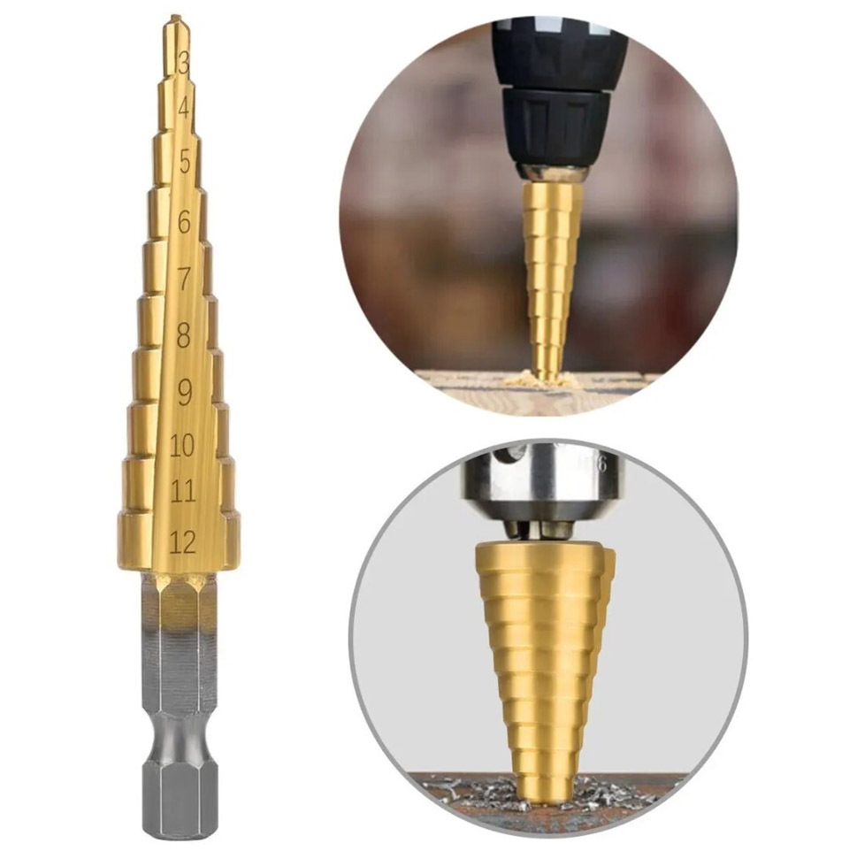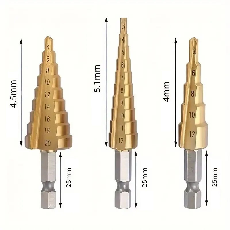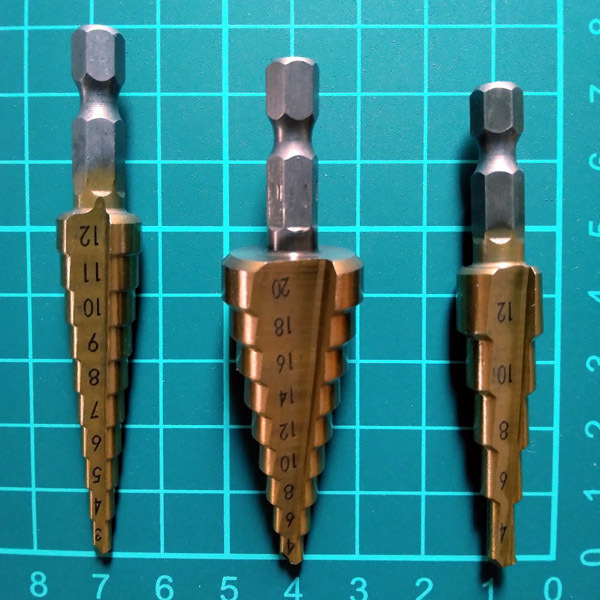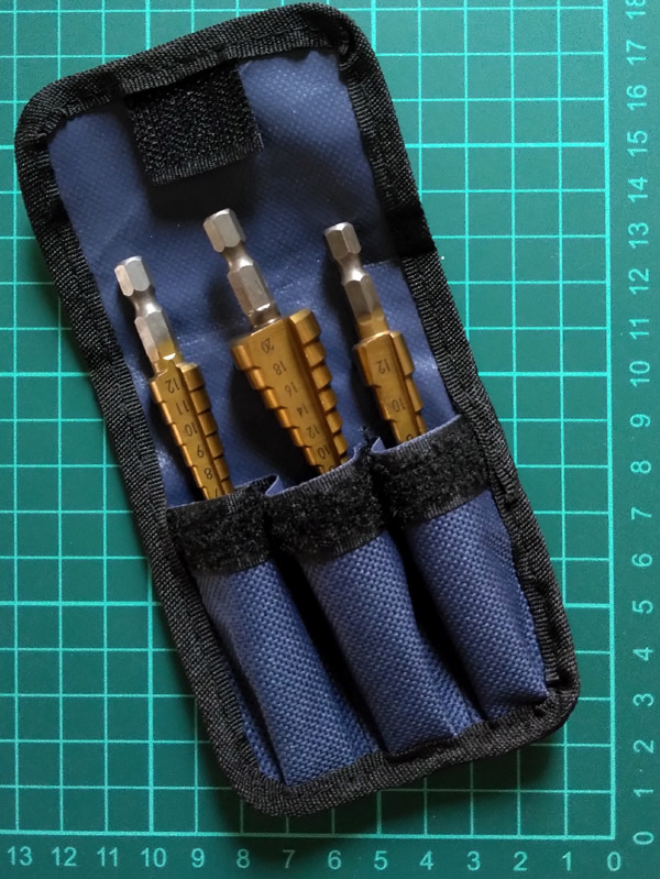 ★ ステップドリル 穴あけ 面取り 穴拡大 タケノコドリル ★ 収納ポーチ付 【3本セット】