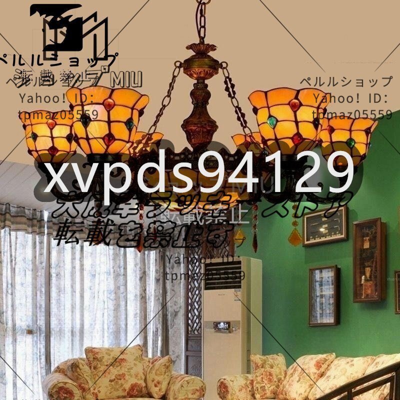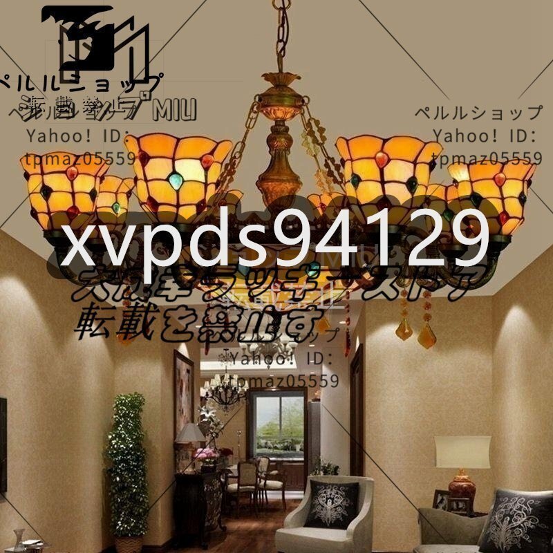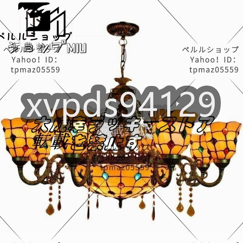 8灯チョウチョウ ステンドグラス.ペンダントライト豪華天井照明ステンドグラスランプ ガラス工芸品