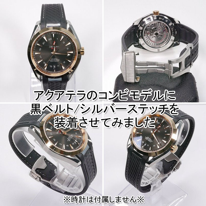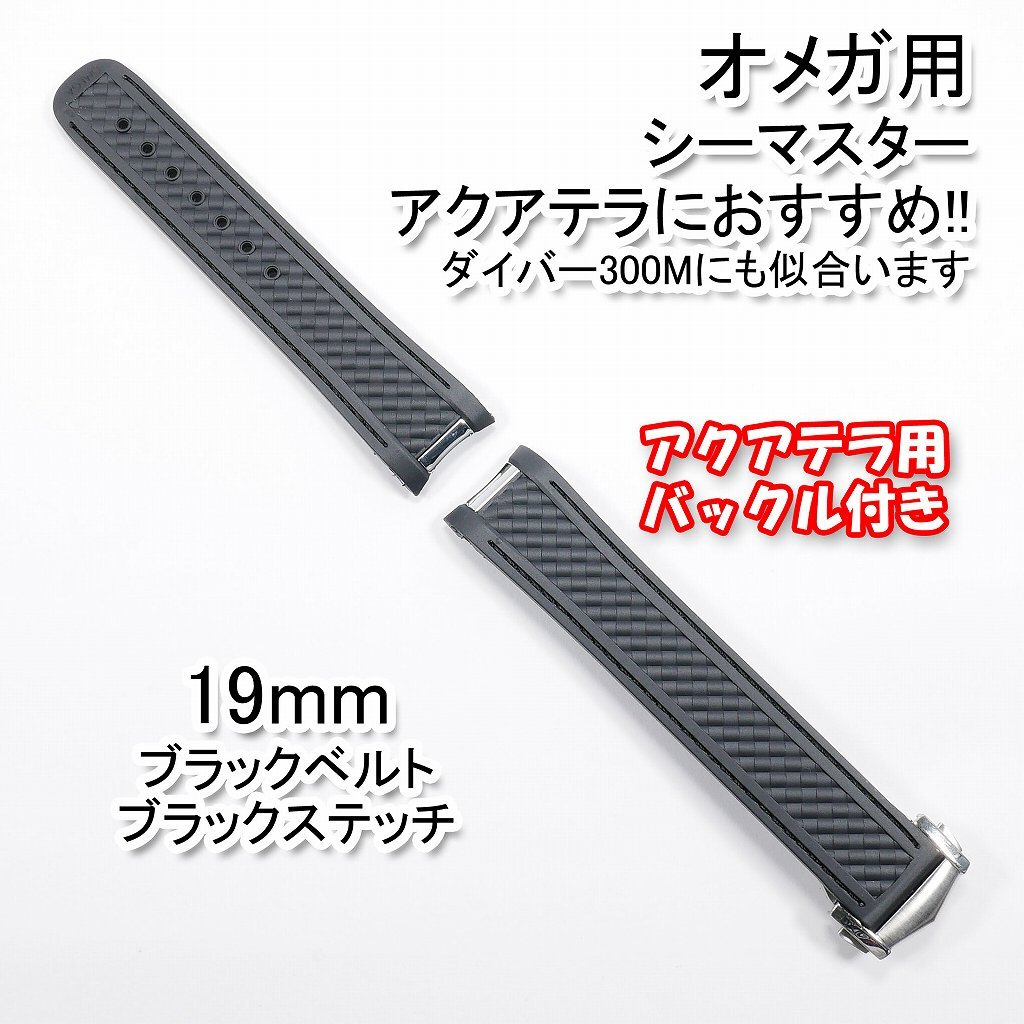 オメガ シーマスター用 互換ラバーベルト ブラック/ブラック 幅19mm バックル付き!